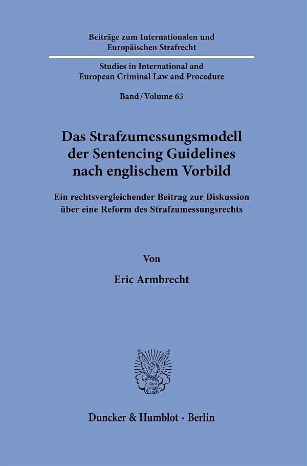 »The Sentencing Guideline Model Based on the English Approach A Comparative Law Analysis on the Reform of German Sentencing Law«: German sentencing law is confronted, in particular, with issues of inconsistency and a lack of transparency in judicial decision-m...