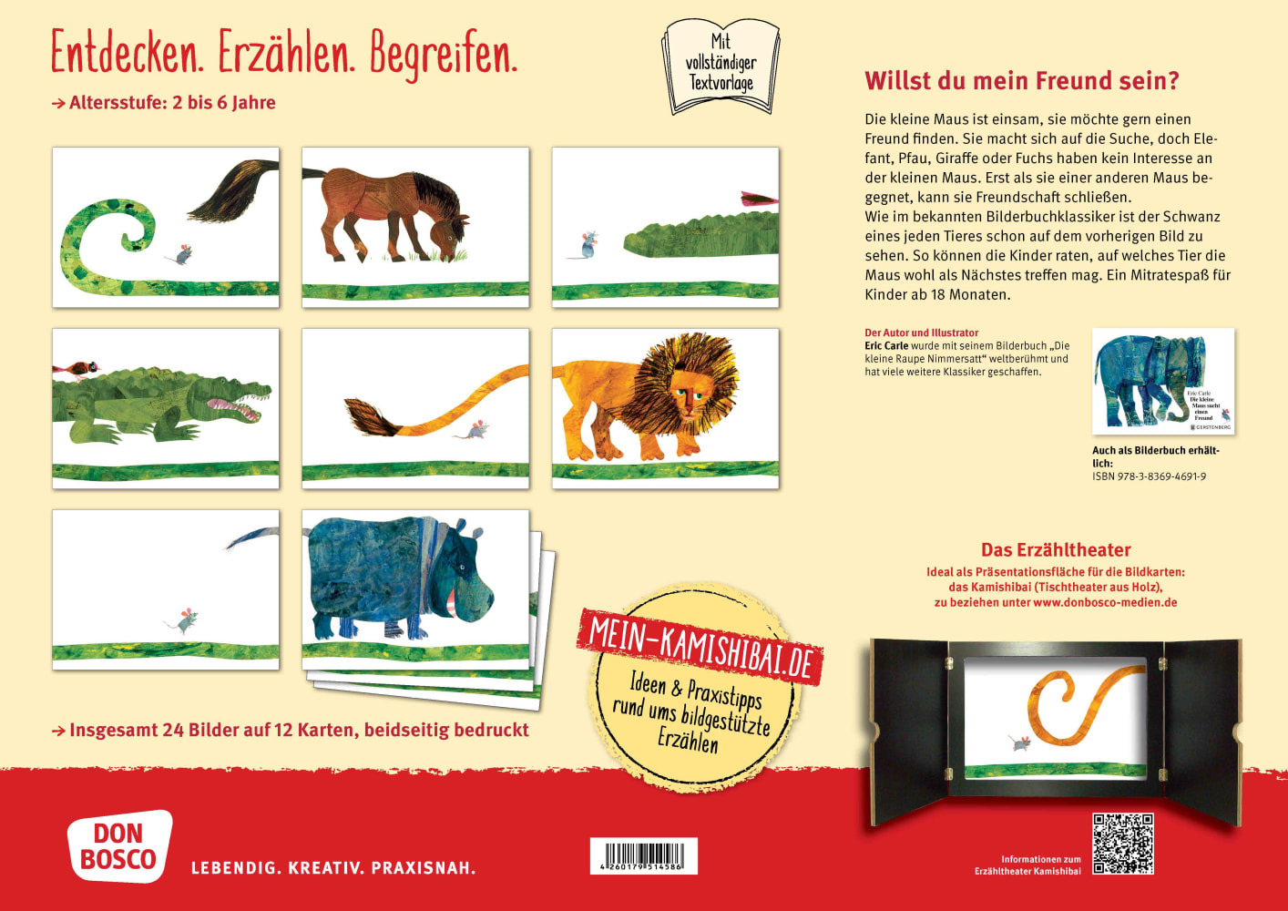 Ein Bilderbuch-Klassiker für das Erzähltheater: Die Freundschaftsgeschichte der kleinen Maus auf Kamishibai-Bildkarten mit Textvorlage. Für Kinder von 2-6. Eric Carles beliebte Mäusegeschichte für das Erzähltheater: ein Kinderbuch-Klassiker Neue Freunde finden...