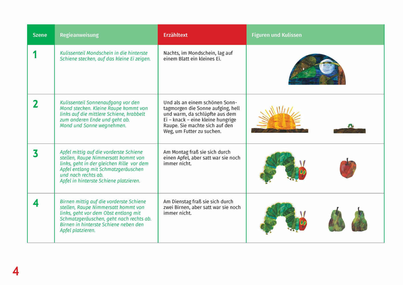 Auspacken & losspielen: Bilderbuch-Klassiker von Eric Carle als einfaches Figurentheater. Für Kinder von 2-8 Jahren. Sofort losspielen: Eric Carles Bilderbuch-Klassiker als einfaches Figurentheater Am Montag fraß sie sich durch einen Apfel, aber satt war s...