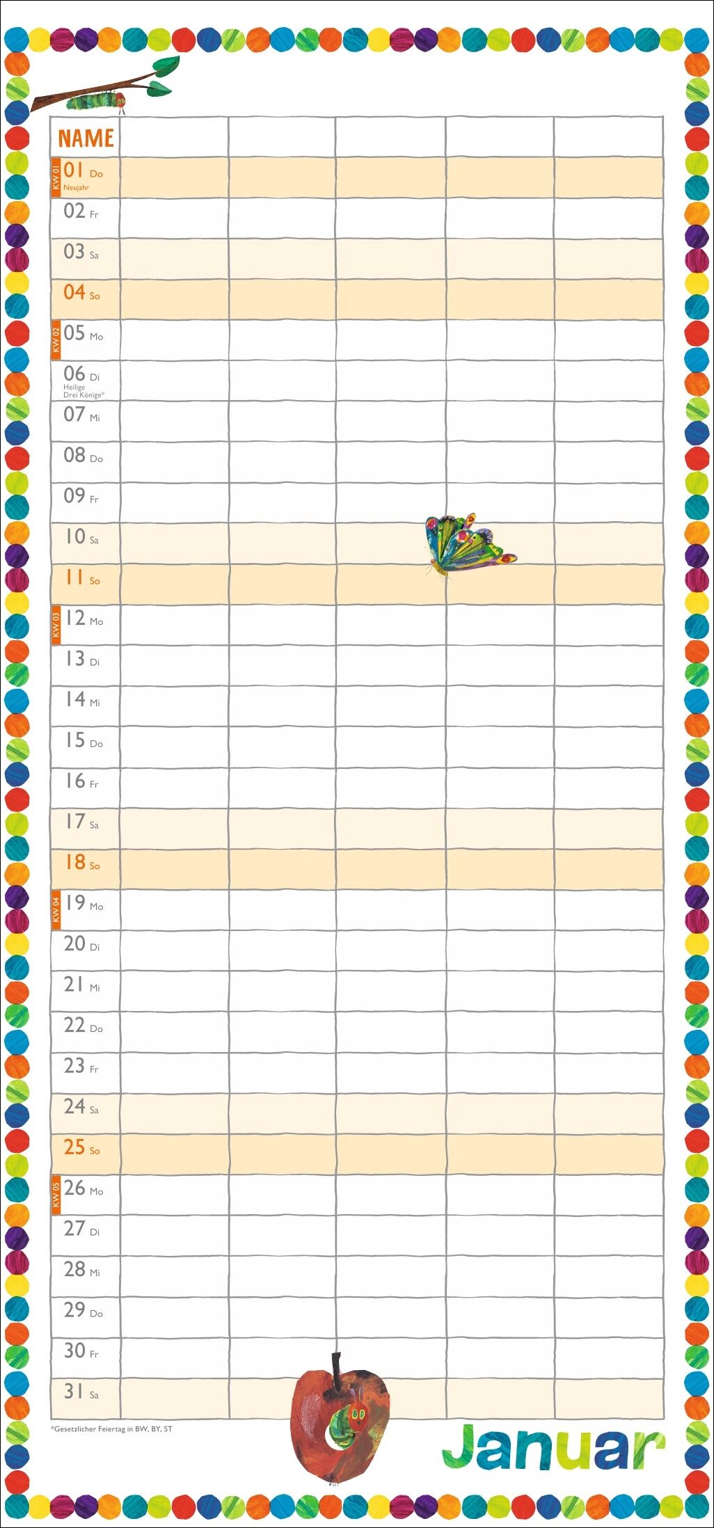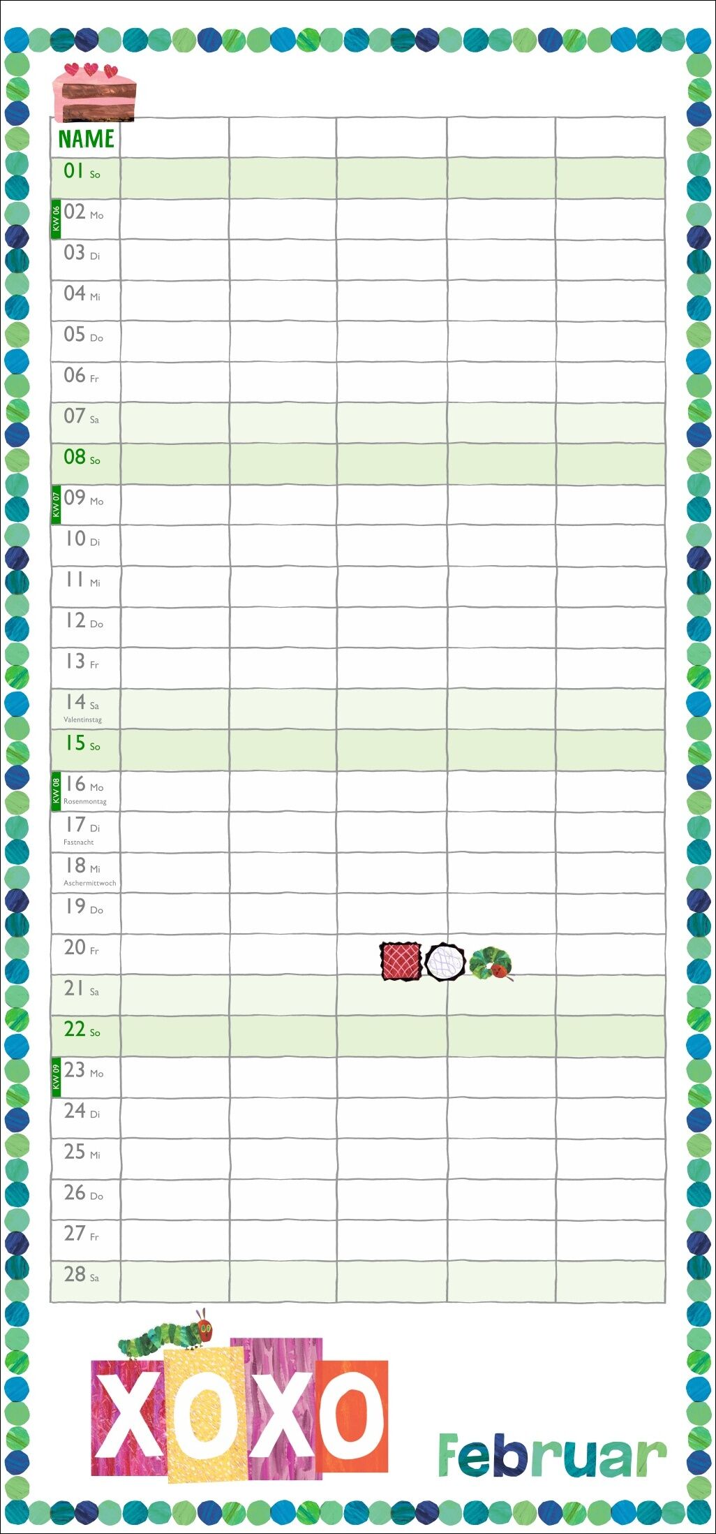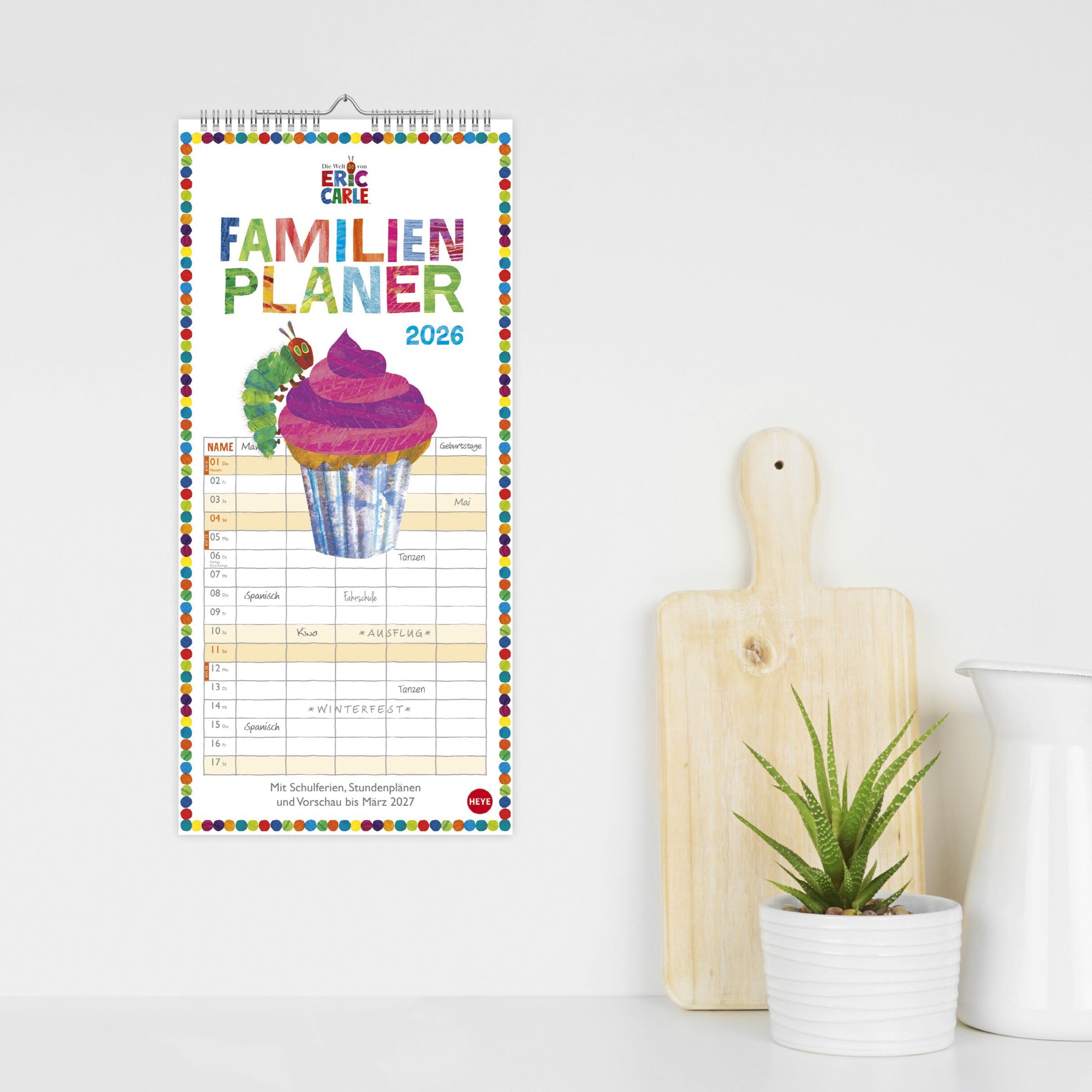 Frisst garantiert keine Termine: Die kleine Raupe Nimmersatt im Familienkalender 2026 - Monat für Monat gut gelaunt in den Tag starten, mit den fröhlich bunten Tier-Illustrationen von Eric Carle - Eine Organisationshilfe für klein und groß: Kalender mit Schu...