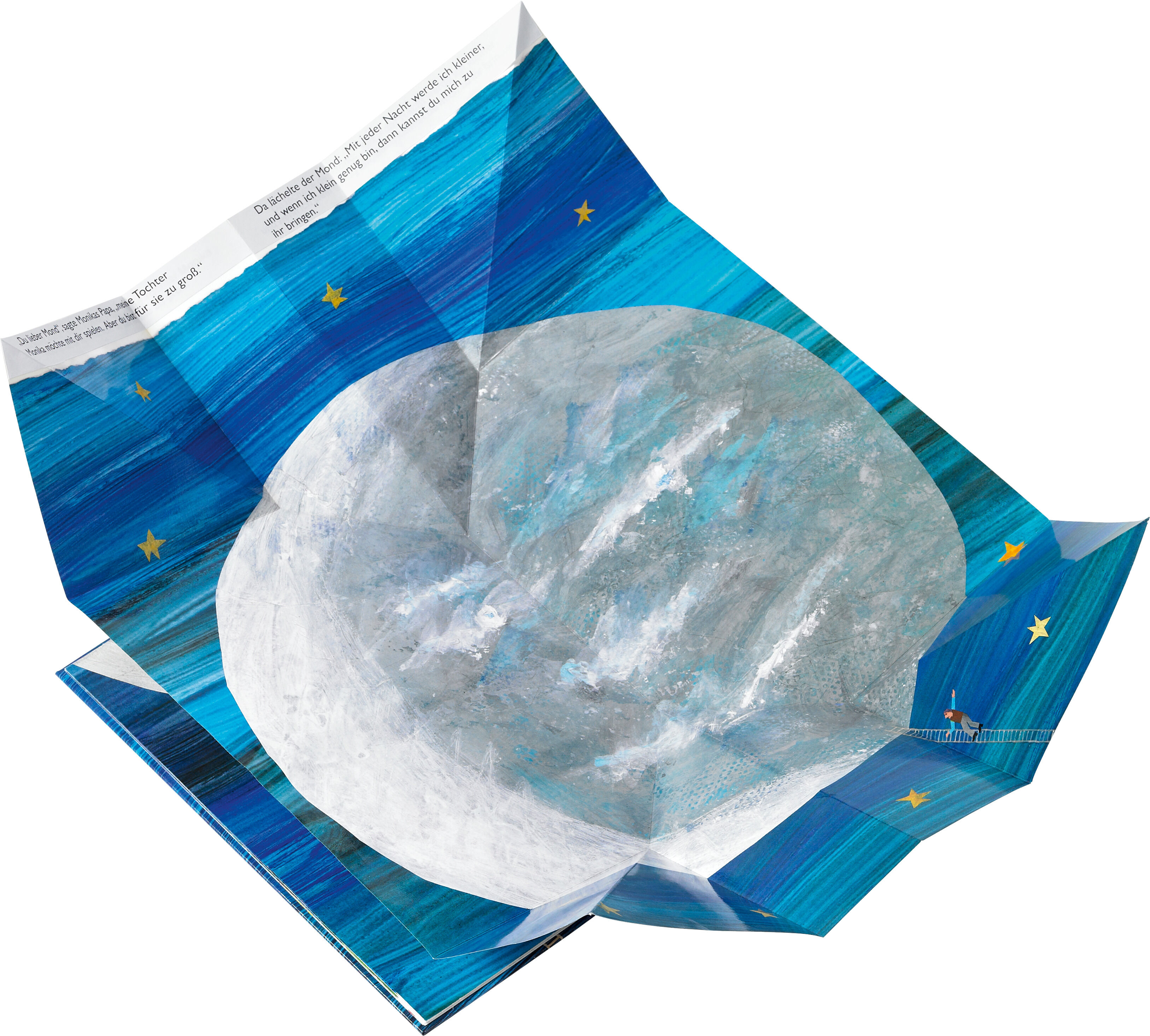 Das himmlische Spiel-Bilderbuch mit vielen Extraseiten zum Aufklappen und Auffalten - jetzt in einer schönen Geschenkausgabe im Midi-Format. Monika hat keine Lust zu schlafen. Viel lieber möchte sie mit dem Mond spielen. Aber der steht so weit oben am Himmel. ...