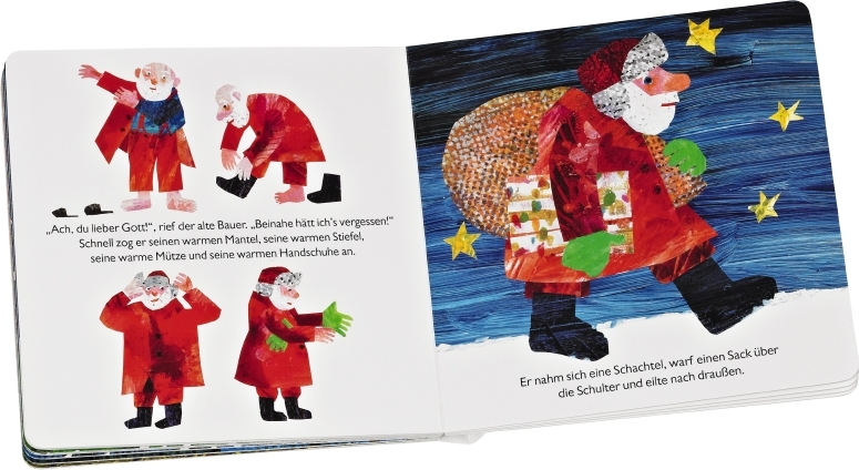 In einem handlichen Pappbilderbuch mit zahlreichen Klappen erzählt Eric Carle seine zutiefst menschliche und tierfreundliche Weihnachtsgeschichte. Es ist kurz vor Weihnachten und noch immer ist kein Schnee gefallen. Während der alte Bauer darüber nachdenkt, sc...