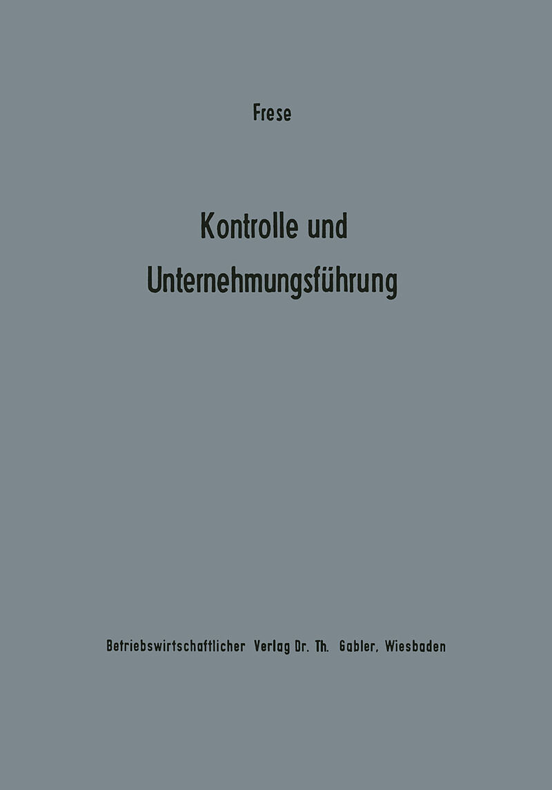 Der vorliegenden Schrift liegt die Dissertation zugrunde, die von mir unter dem Titel "Die Kontrolle als Informationsquelle der Unternehmungsführung. Entscheidungs-und organisationstheoretische Grundfragen" der Wirtschafts und Sozialwissenschaftliche...