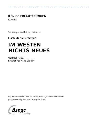 Im Westen nichts Neues von Erich Maria Remarque - Textanalyse und Interpretation