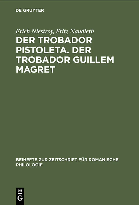 Keine ausführliche Beschreibung für "Der Trobador Pistoleta. Der Trobador Guillem Magret" verfügbar. Klappentext Die im Jahre 1905 von Gustav Gröber ins Leben gerufene Reihe der Beihefte zur Zeitschrift für romanische Philologie zählt zu den renommie...