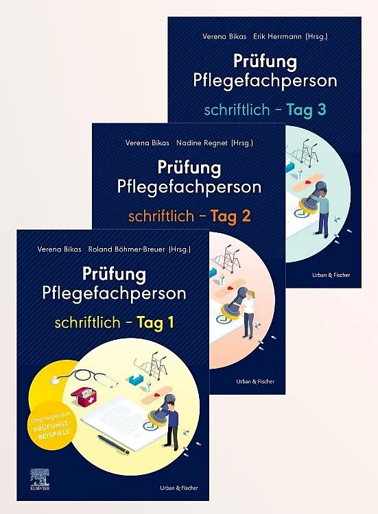 Das Paket enthält die 3 Bände Prüfung Pflegefachperson - schriftlich Tag 1 - 2 - 3