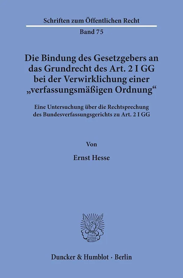 Die Bindung des Gesetzgebers an das Grundrecht des Art. 2 I GG bei der Verwirklichung einer "verfassungsmäßigen Ordnung".