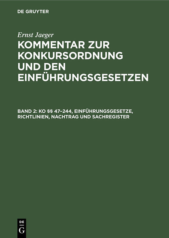 Ernst Jaeger: Kommentar zur Konkursordnung und den Einführungsgesetzen / KO §§ 47244, Einführungsgesetze, Richtlinien, Nachtrag und Sachregister