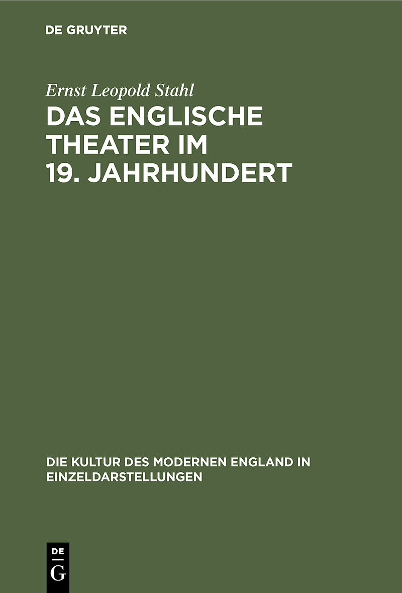 Frontmatter -- Inhaltsverzeichnis und Liste de Bilder -- Vorwort -- 1. Kapitel. Das Publikum -- 2. Kapitel. Die Theater -- 3. Kapitel. Das Drama bis zur Mitte des Jahrhunderts -- 4. Kapitel. Die Bühne -- 5. Kapitel. Die Schauspielkunst -- 6. Kapitel. Soziologi...