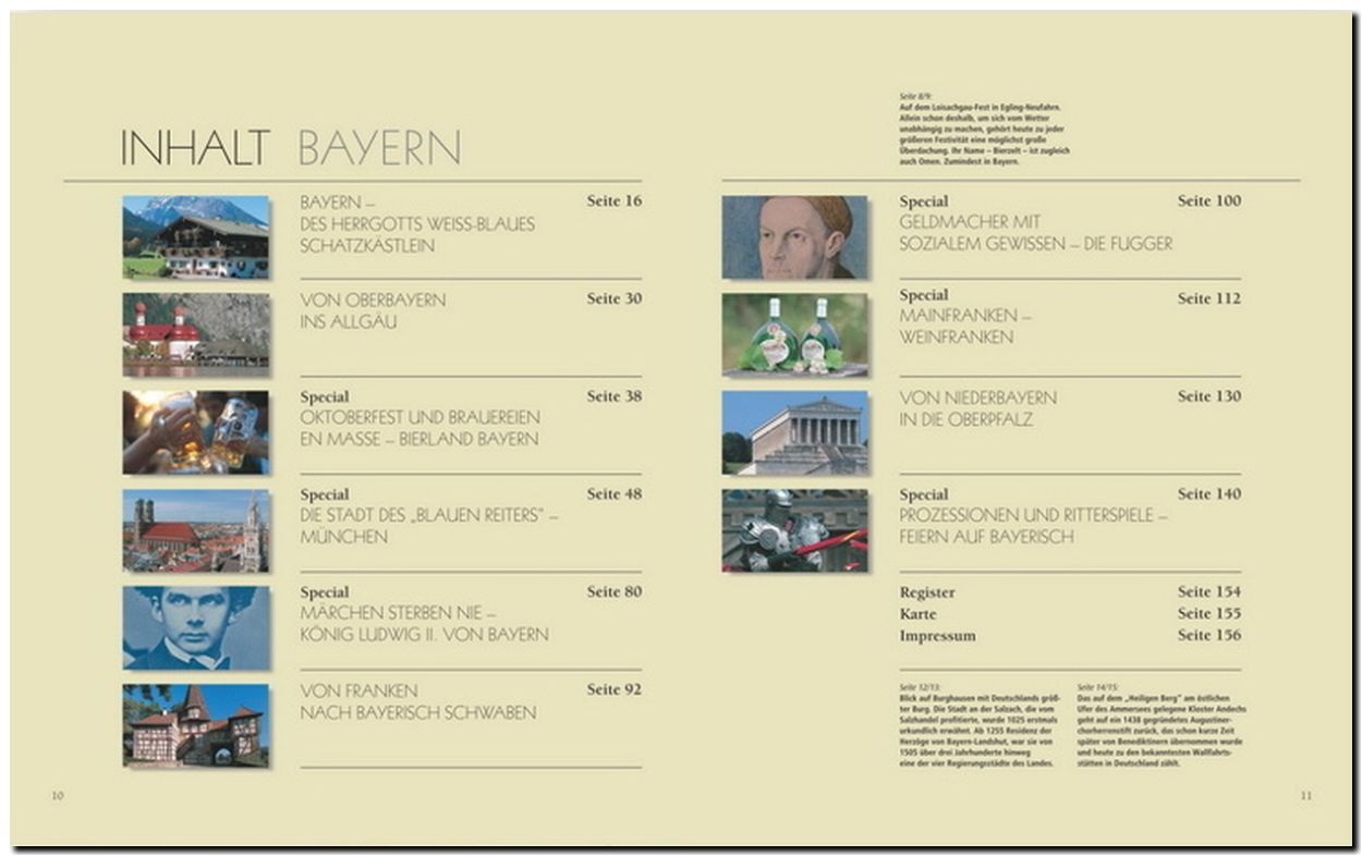 Von der majestätischen Bergwelt der Alpen mit dem höchsten Gipfel Deutschlands, der Zugspitze, über die idyllischen Seen der bayerischen Voralpen, den faszinierenden Flusslandschaften von Donau, Altmühl und Main bis hin zur rauen Rhön besitzt Bayern eine lands...