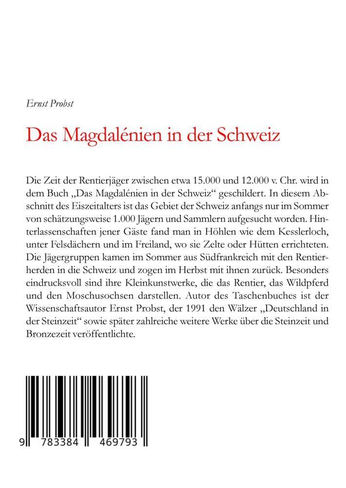Die Zeit der Rentierjäger zwischen etwa 15.000 und 12.000 v. Chr. wird in dem Buch Das Magdalénien in der Schweiz geschildert. In diesem Abschnitt des Eiszeitalters ist das Gebiet der Schweiz anfangs nur im Sommer von schätzungsweise 1.000 Jägern und Sammlern ...