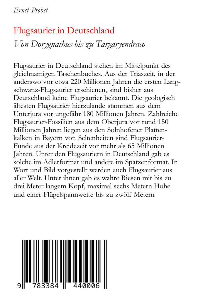 Flugsaurier in Deutschland stehen im Mittelpunkt des gleichnamigen Buches. Aus der Triaszeit, in der anderswo vor etwa 220 Millionen Jahren die ersten Langschwanz-Flugsaurier erschienen, sind bisher aus Deutschland keine Flugsaurier bekannt. Die geologisch ält...