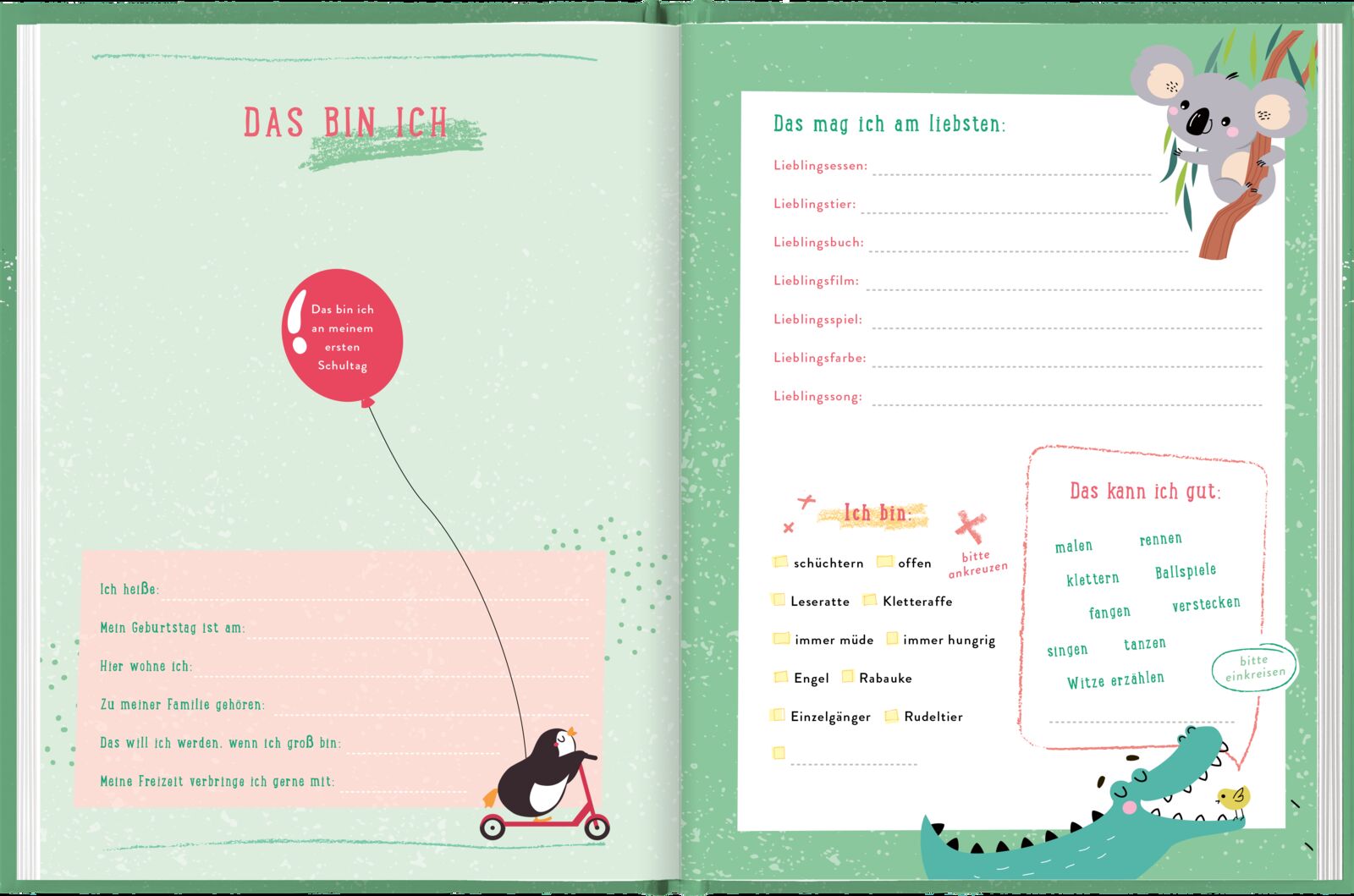 Tolles Erinnerungsalbum zum Schulanfang Buntes Ausfüllalbum rund um den ersten Schultag Zum Ausmalen, Ankreuzen, Zeichnen, Einkleben für Kinder, die noch nicht schreiben können Schönes Geschenk für die Schultüte oder zum 6. Geburtstag Erinnerungsalbum Einschu...
