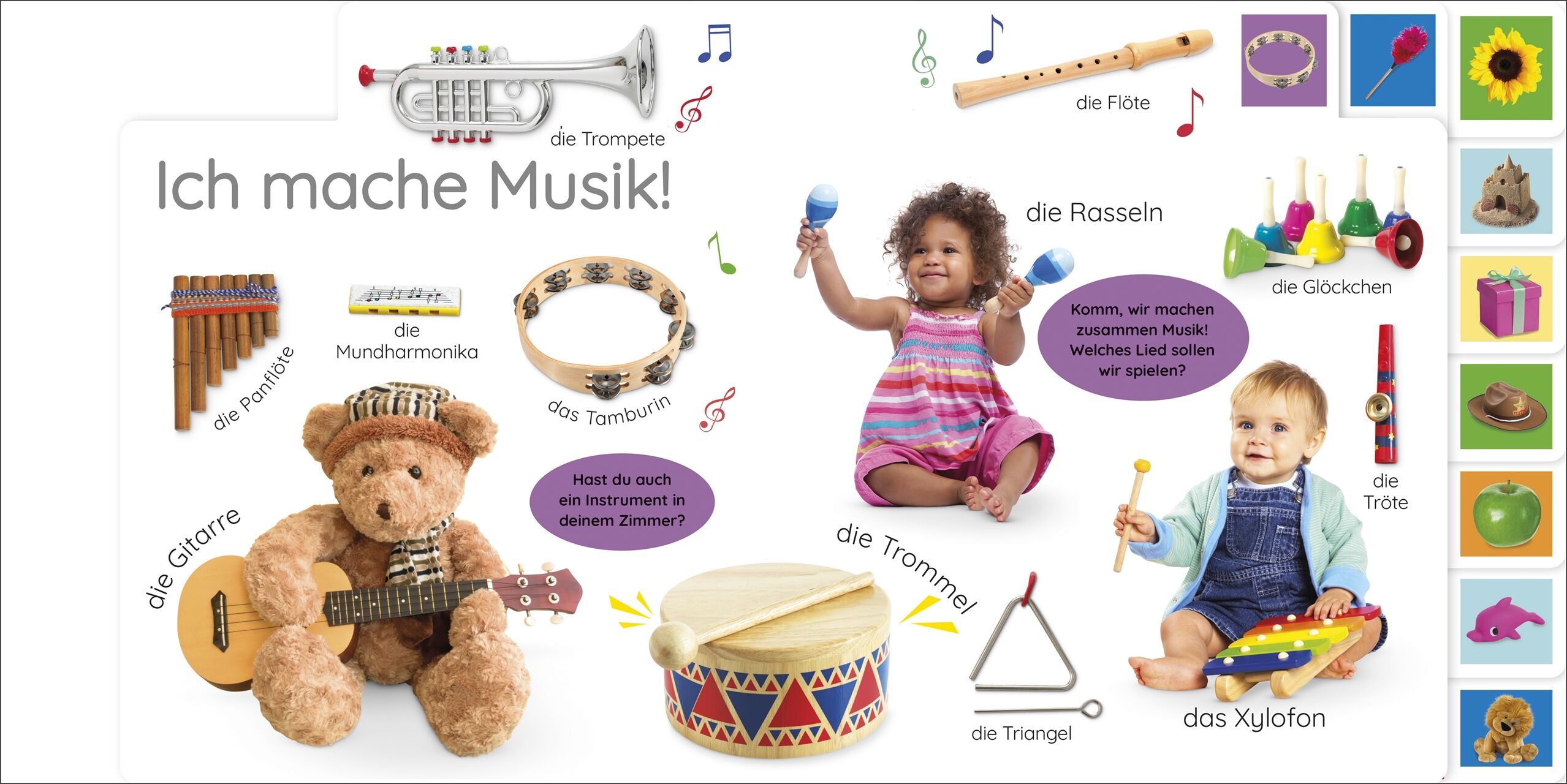 Großes Bildwörterbuch für die Kleinen mit praktischem Griff-Register! Spielsachen, Tiere, Musik oder den Garten in diesem Bilderbuch gibt es viel zu entdecken! Auf über 200 großen, realen Farbfotos entdecken Kinder Gegenstände und Menschen aus ihrer Alltagswe...