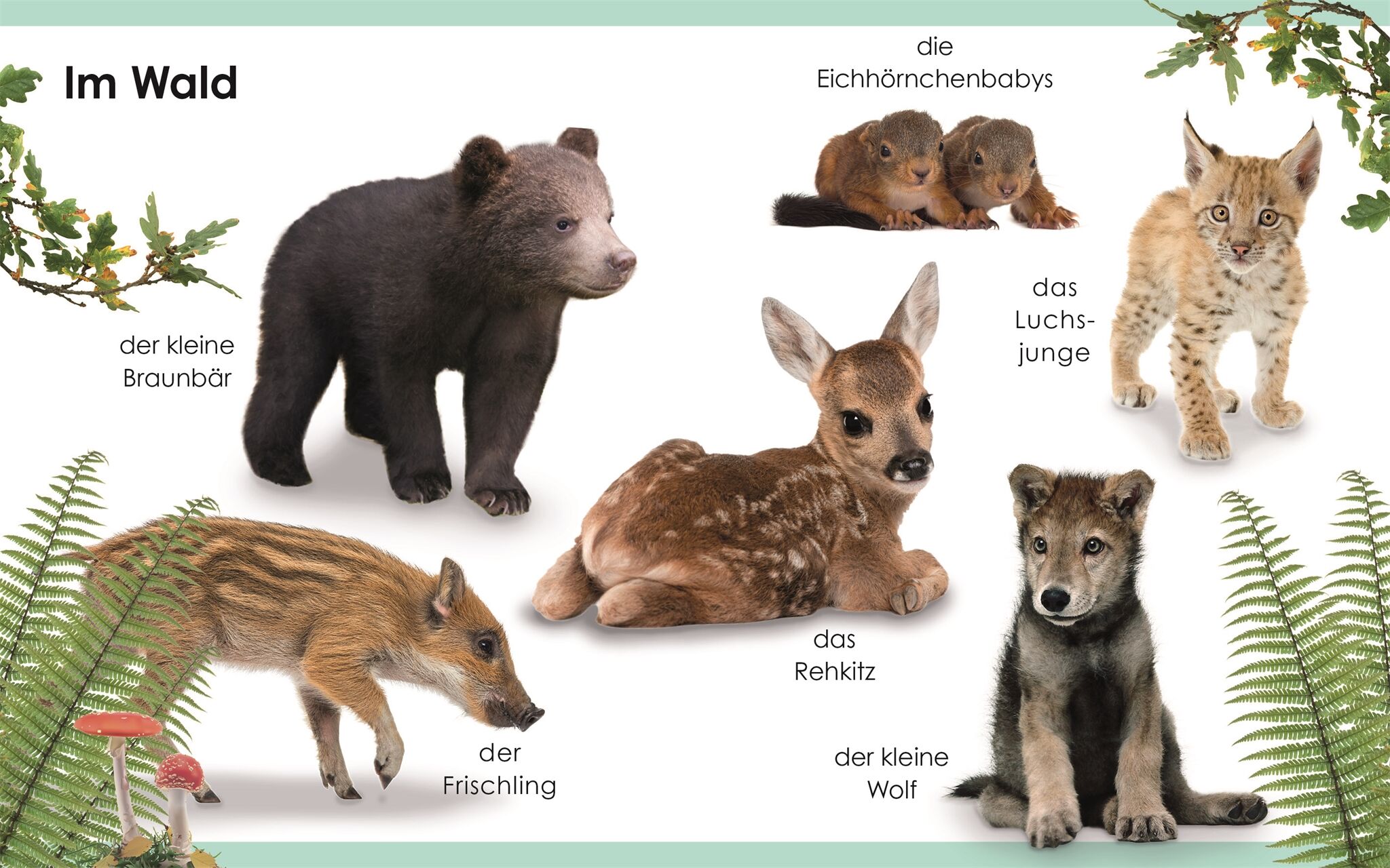 . Faszinierende Themen: Ob Elefantenkalb und kleines Zebra, Lamm und Ferkel oder Rehkitz und Eichhörnchenbaby - auf jeder Seite werden viele süße Tierkinder gezeigt. Die Themenvielfalt animiert Kleinkinder dazu, ihre Umwelt genauer zu erforschen und das Erlebte und Gesehene in eigene Worte zu fassen.