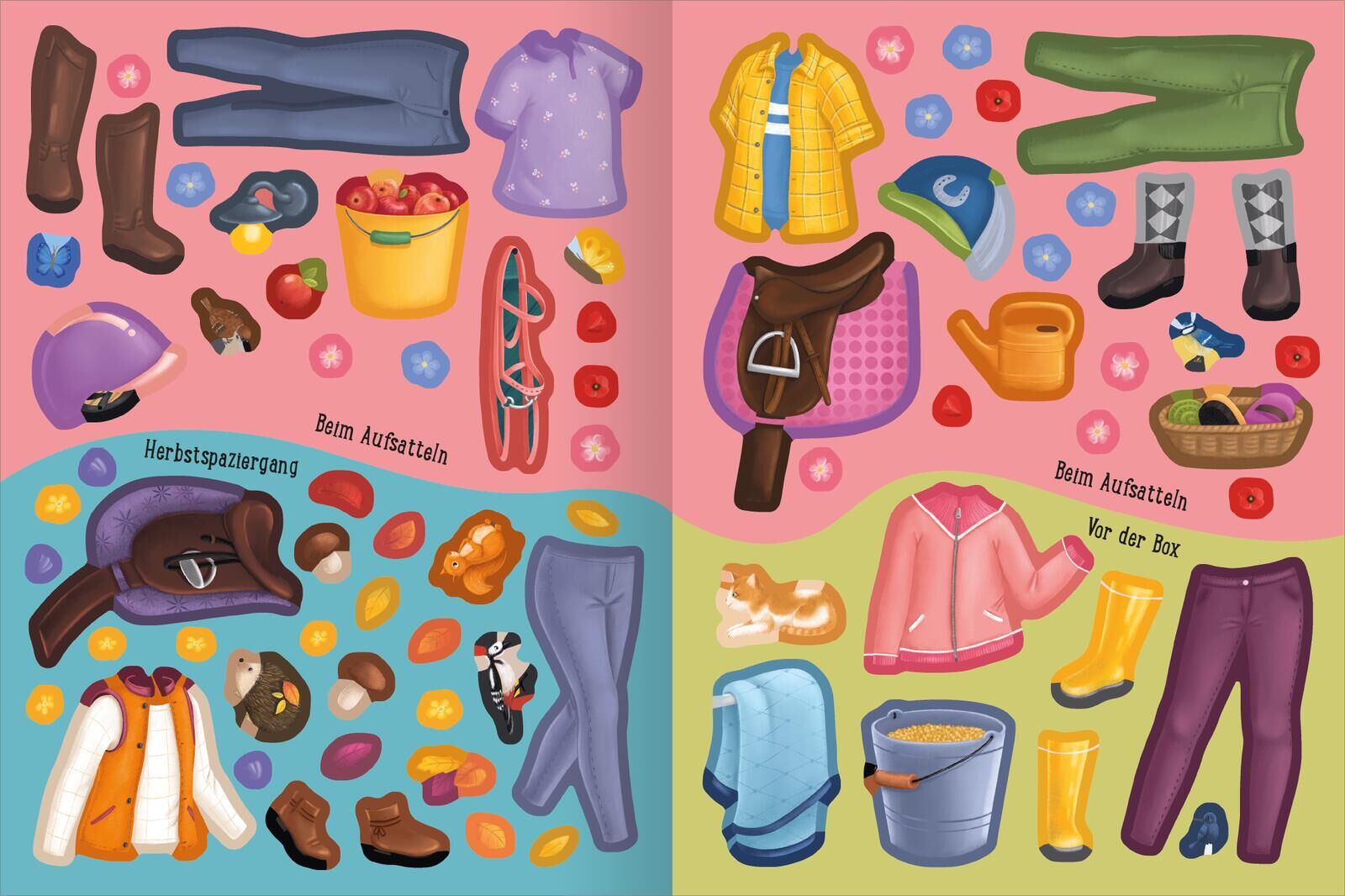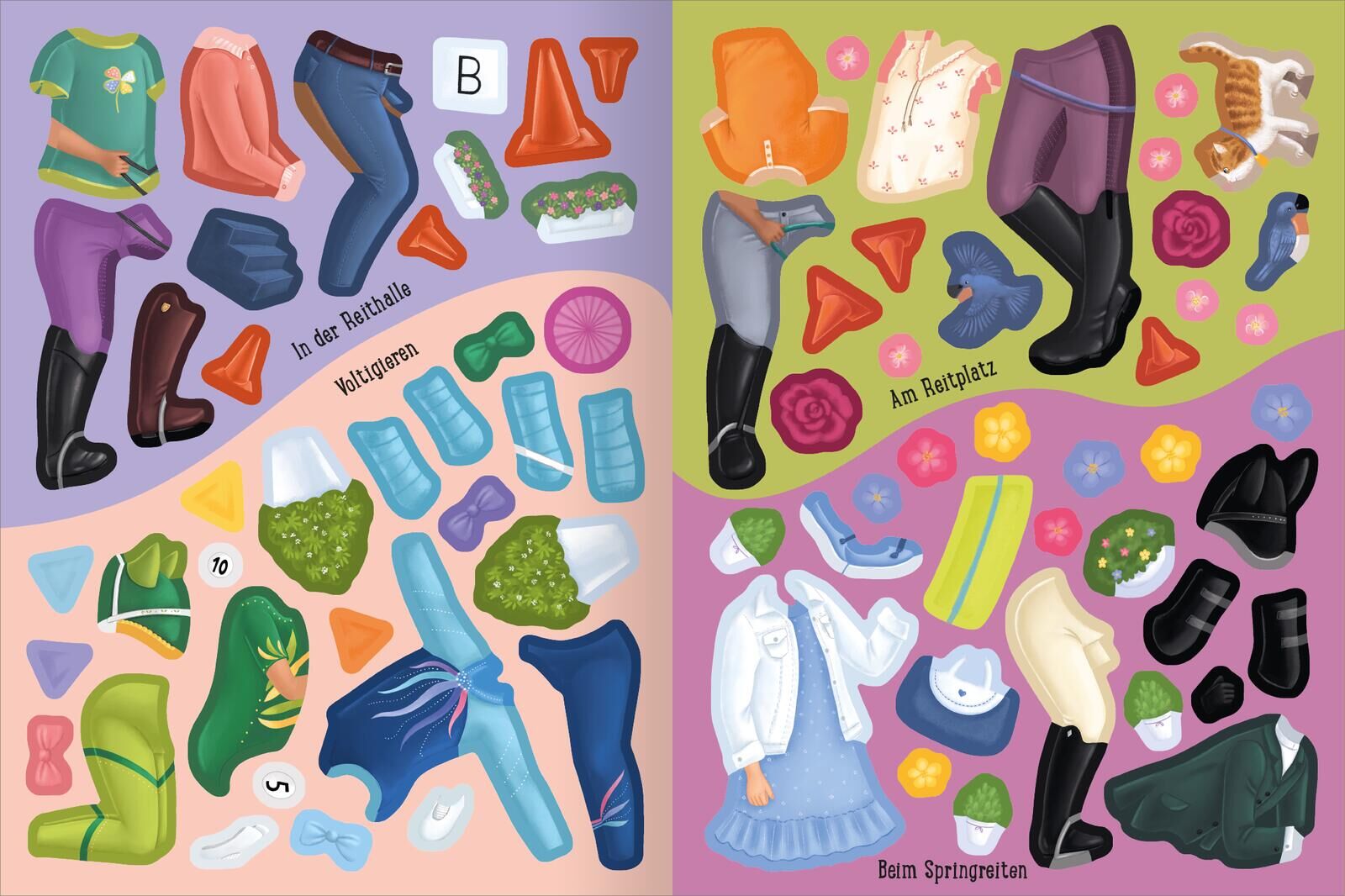 Großer Klebe-Anziehspaß Willkommen in der aufregenden Welt der Pferde und Ponys! Wähle aus über 250 Aufklebern, erwecke die bunten Szenen rund ums Reiten zum Leben und ziehe allen tolle Outfits an. Tolle Bilder: Die Szenen sind bunt illustriert und laden zum ...