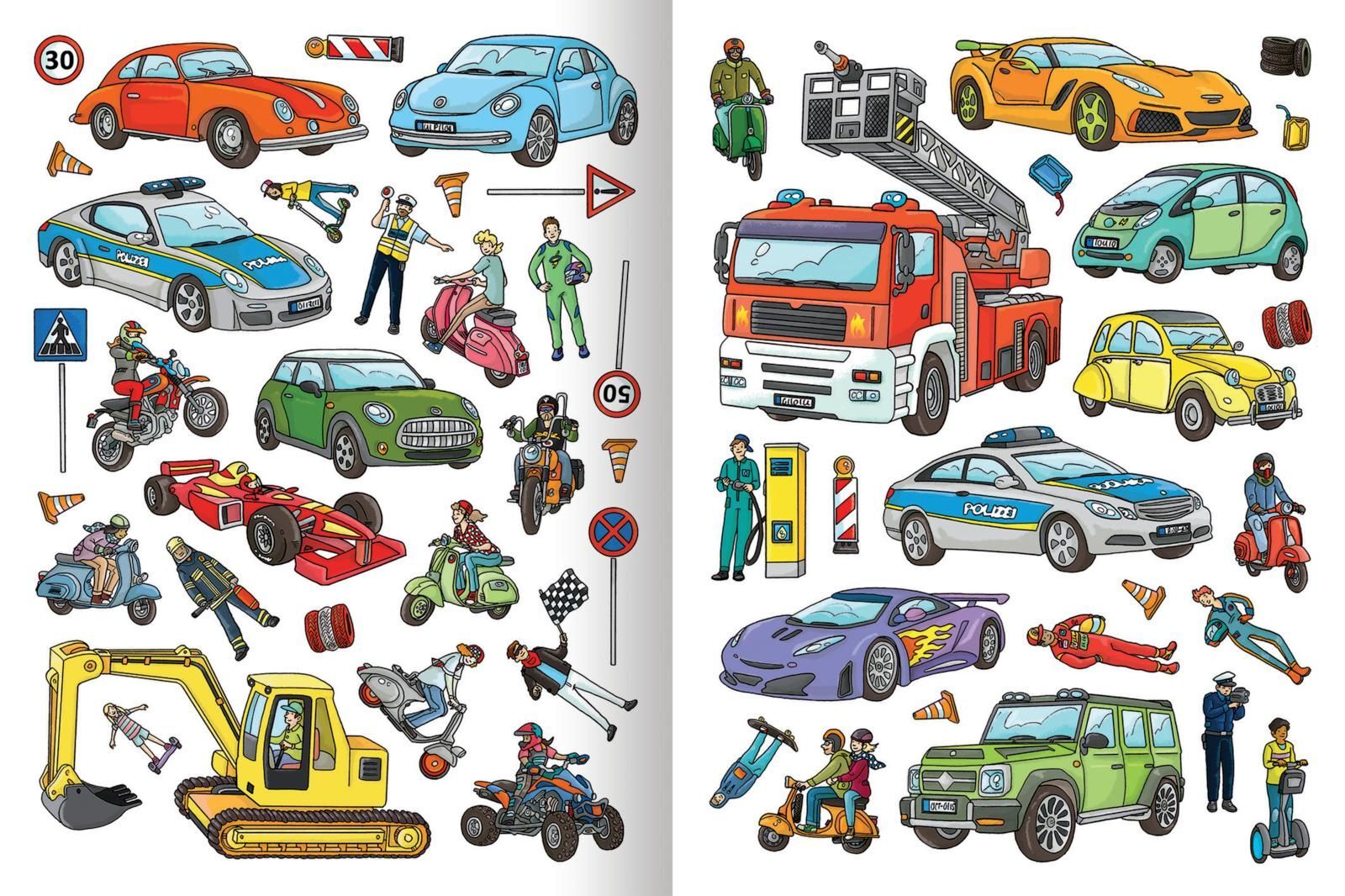 Großer Stickerspaß für kleine Fahrzeugfans! Kleine Freunde von Fahrzeugen von Auto über Bagger bis hin zum Feuerwehrauto finden in diesem Stickerheft alles, was das Herz begehrt: Auf den kindgerecht illustrierten Seiten gibt es viele verschiedene Szenen in de...