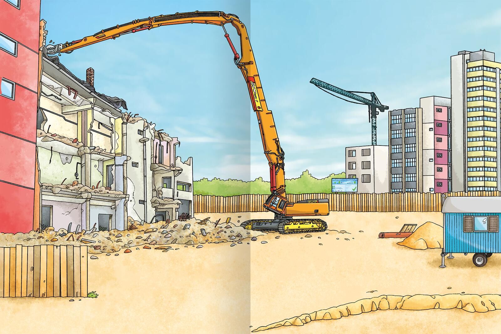 Für alle kleinen Baustellen-Fans Ob Bagger, Kran oder Betonmischer - auf den bunt illustrierten Seiten gibt es jede Menge zu entdecken! Belebe die unterschiedlichsten Baustellen-Szenen mit den über 200 coolen Metallic-Aufklebern zum Leben! Metallic-Effekt : D...