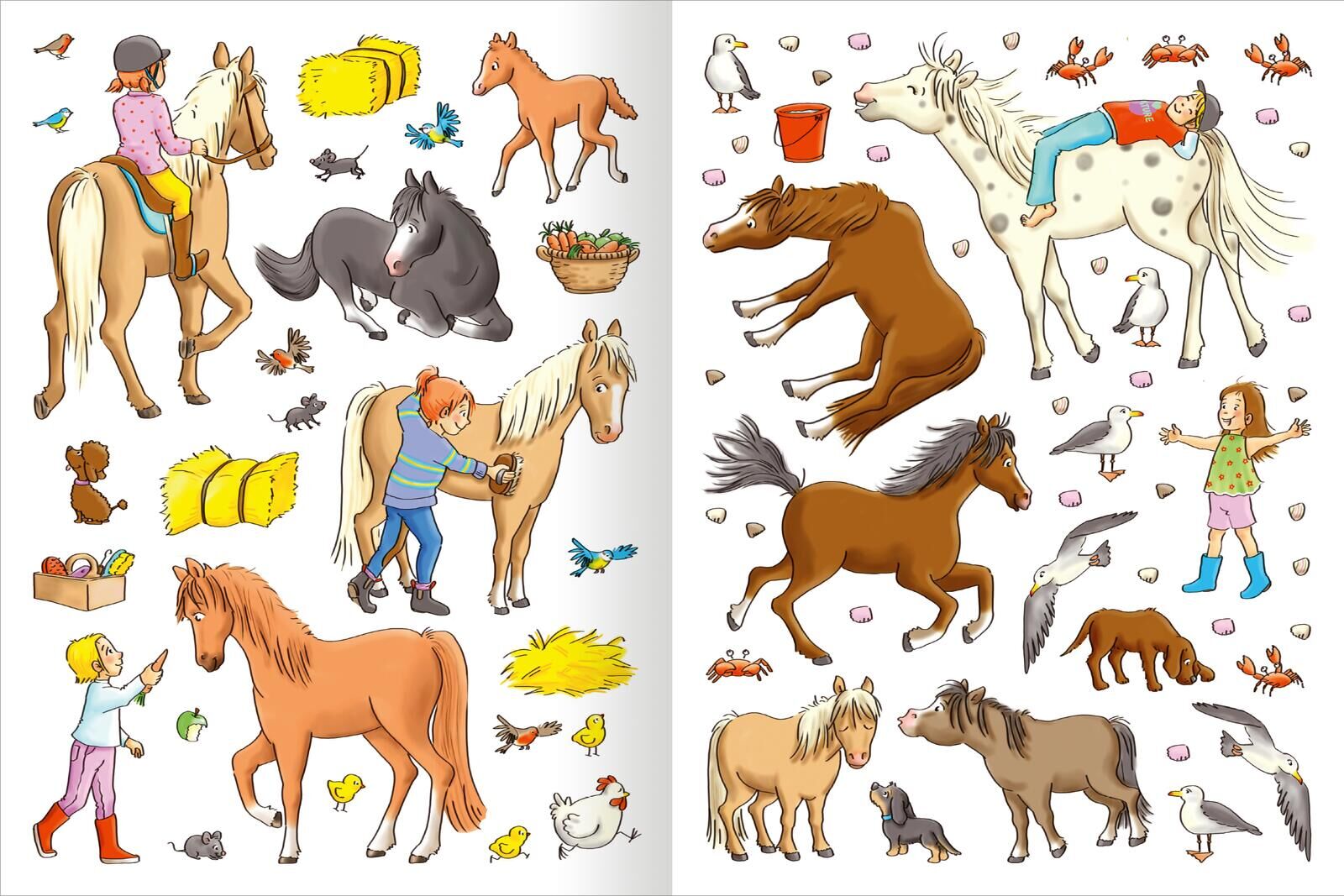 Für alle kleinen Pferdefans! Dieses Stickerbuch mit über 250 kunterbunten Aufklebern zum Thema Reiten eignet sich für Kinder ab 3 Jahren. Ob im Stall, bei den Ponys oder auf der Koppel: Die bunt illustrierten Szenen warten darauf, mit den Stickermotiven bekle...