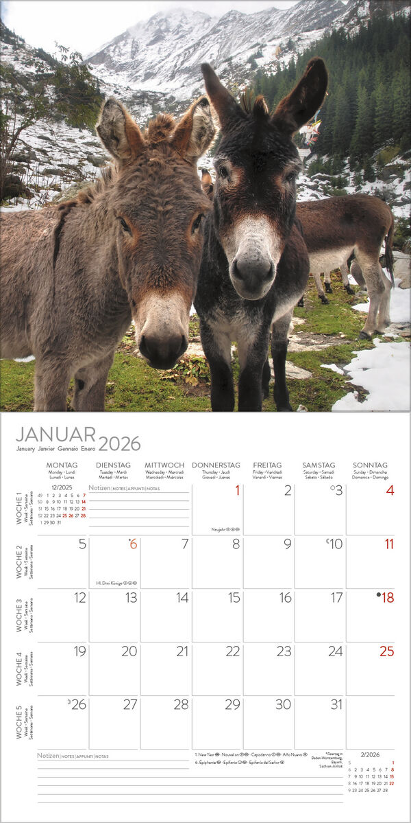 Produktmerkmale Wandkalender im Format: 30 x 30 cm; Offenes Format: 30 x 60 cm; umweltfreundliches FSC Papier Jede Kalenderseite mit großem Bild und viel Platz im Kalendarium für Notizen und Termine Mehrsprachiges Kalendarium: DE/GB/FR/IT/ES mit Feiertagen für...
