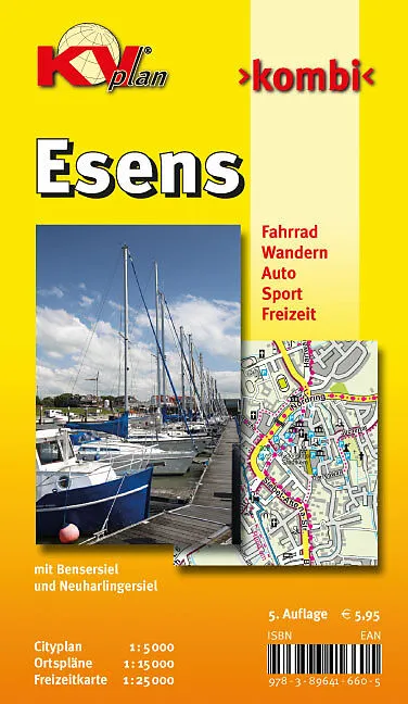 Der KVplan Esens kombiniert für die Samtgemeinde in der aktualisierten 5. Auflage Alltags- und Freizeitinformationen und weist in 4 verschiedenen Kartenbildern folgende Merkmale auf: RADKARTE - touristische Radrouten (u.a. Mühlen-Route, Premiumroute: Alte und ...