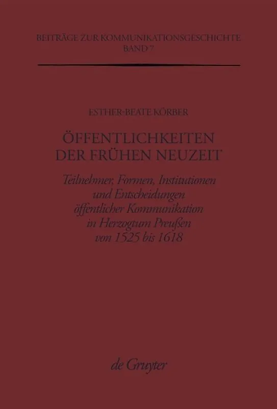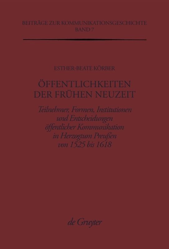 Keine ausführliche Beschreibung für "Öffentlichkeiten der Frühen Neuzeit" verfügbar. Autorentext Esther-Beate Körber, geboren 1957, Professorin für Neuere Geschichte an der Freien Universität Berlin. Inhalt Frontmatter -- Vorwort -- Inhalt -- Abkürzu...