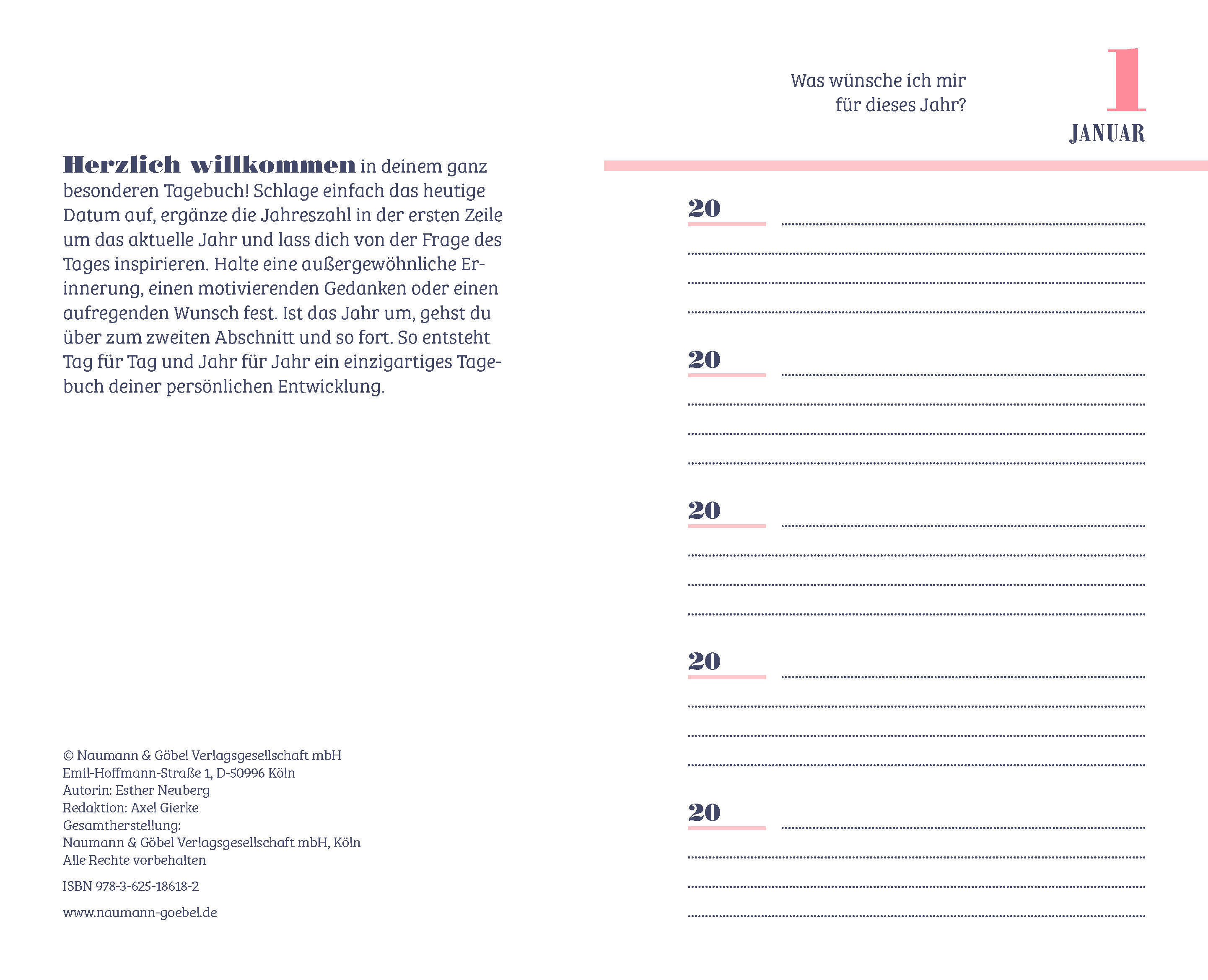 Inspirationen für jeden Tag • 365 anregende Fragen, die sofort Lust aufs Eintragen machen • 5 Jahre lang täglich eine Antwort - spannend im Vergleich • Perfekt als Geschenk: wunderschönes Diary mit Silberfolie, Lesebändchen und elastischem Vers...
