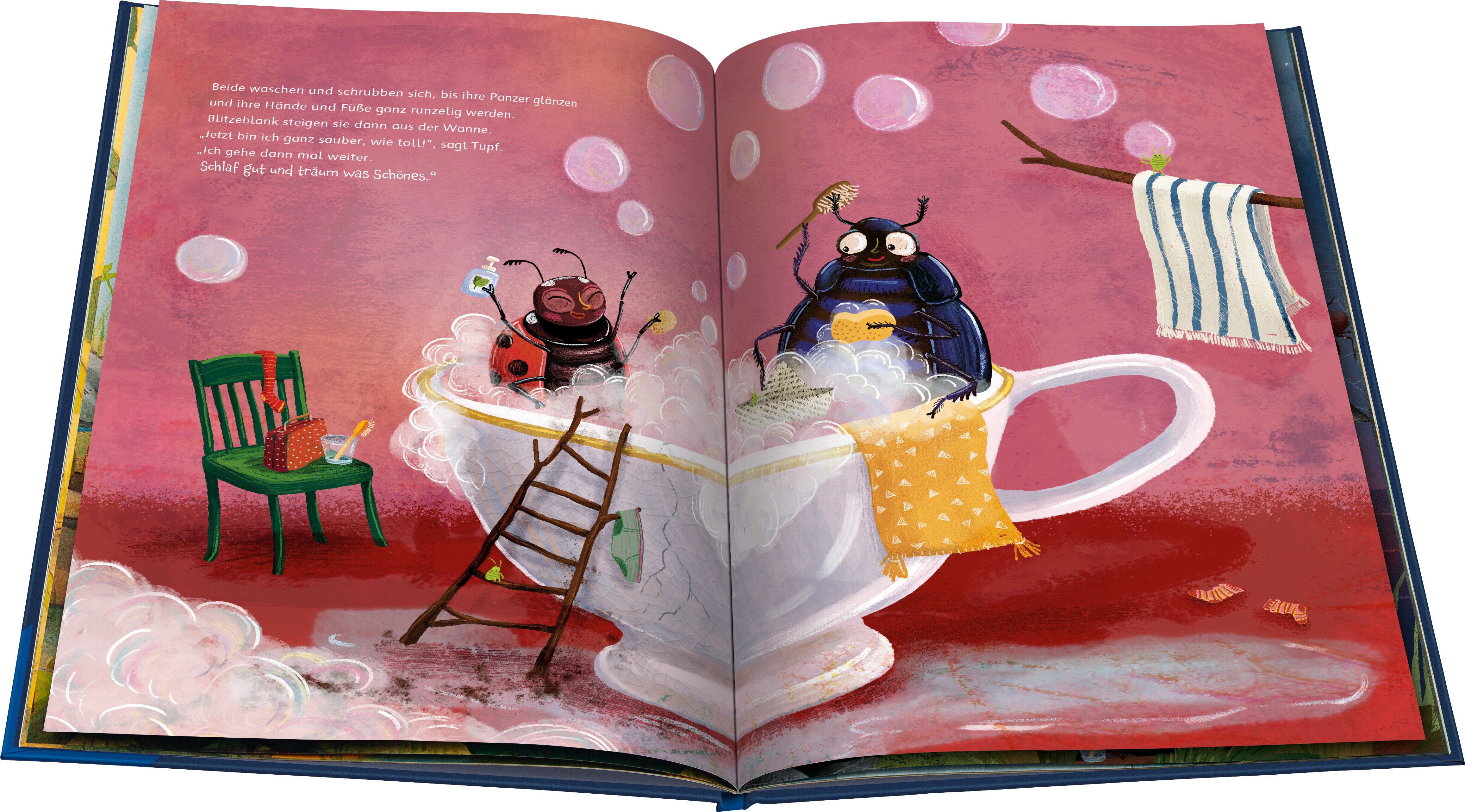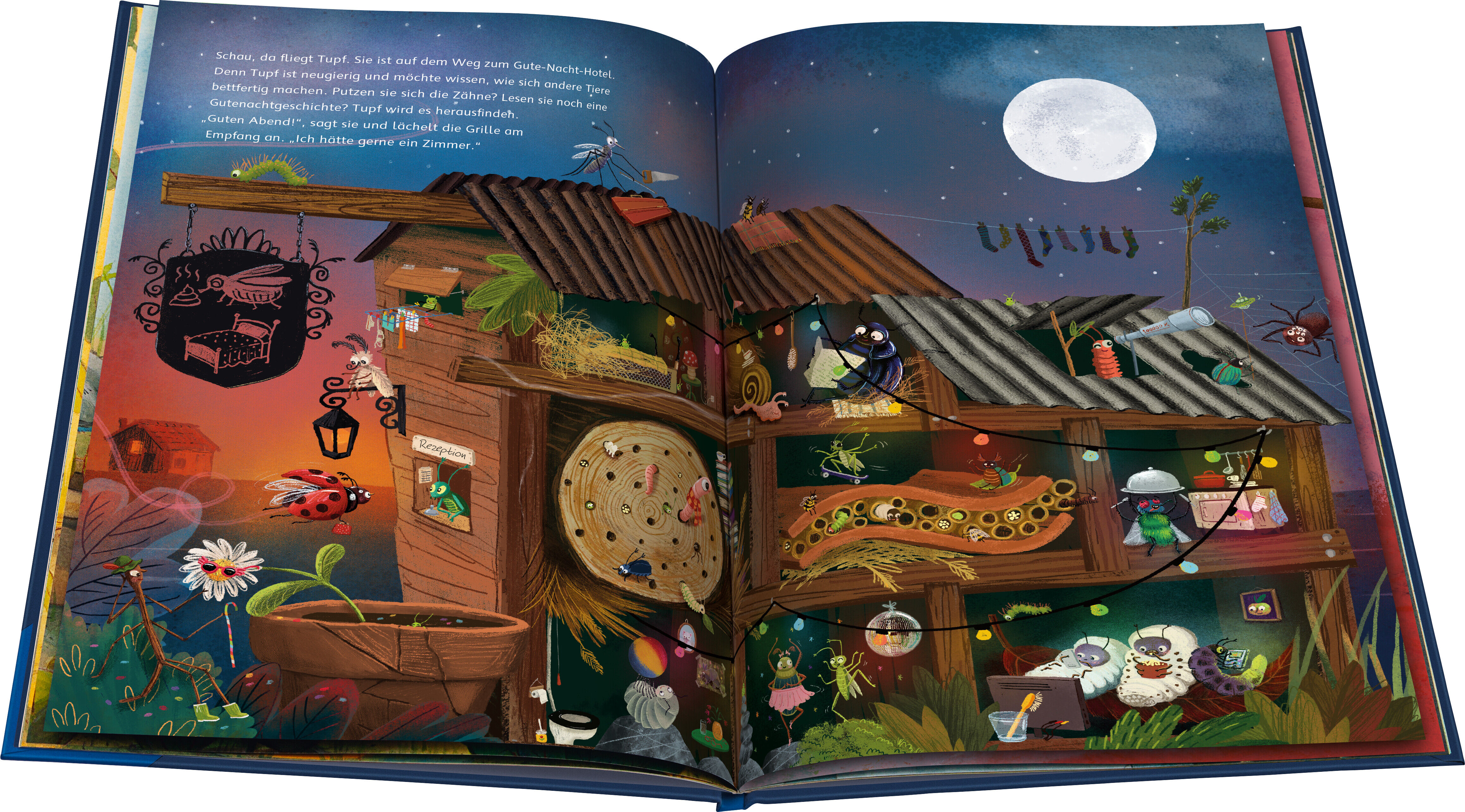 Gute Nacht und träum was Schönes! Marienkäferdame Tupf möchte gerne wissen, was andere Insekten abends machen, bevor sie ins Bett gehen. Um das herauszufinden, besucht sie verschiedene Gäste im Gute-Nacht-Hotel und begleitet sie bei ihren abendlichen Ritualen....