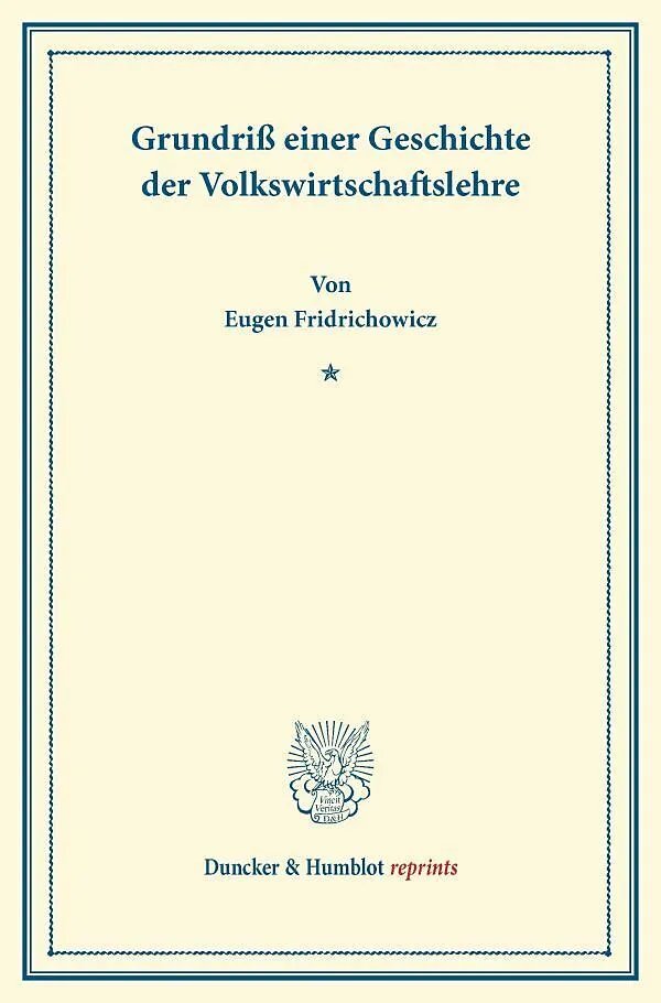 Gegenstand dieses Buches ist die Geschichte der Volkswirtschaftslehre. Fridrichowicz untersucht zunächst die volkswirtschaftlichen Anschauungen des Altertums sowie des Mittelalters, bevor er sich den neueren Entwicklungen der Disziplin zuwendet. Dabei macht er...