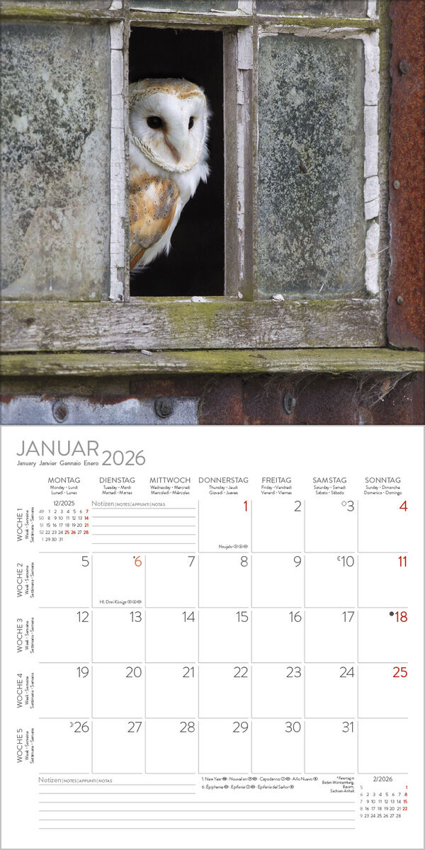 Produktmerkmale Wandkalender im Format: 30 x 30 cm; Offenes Format: 30 x 60 cm; umweltfreundliches FSC Papier Jede Kalenderseite mit großem Bild und viel Platz im Kalendarium für Notizen und Termine Mehrsprachiges Kalendarium: DE/GB/FR/IT/ES mit Feiertagen für...