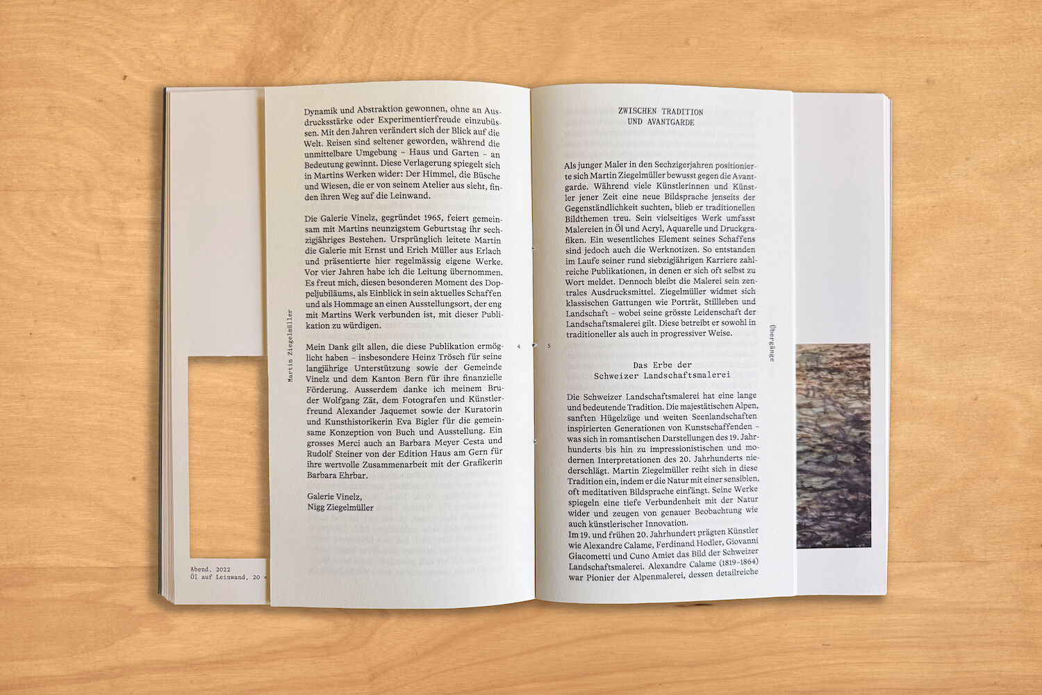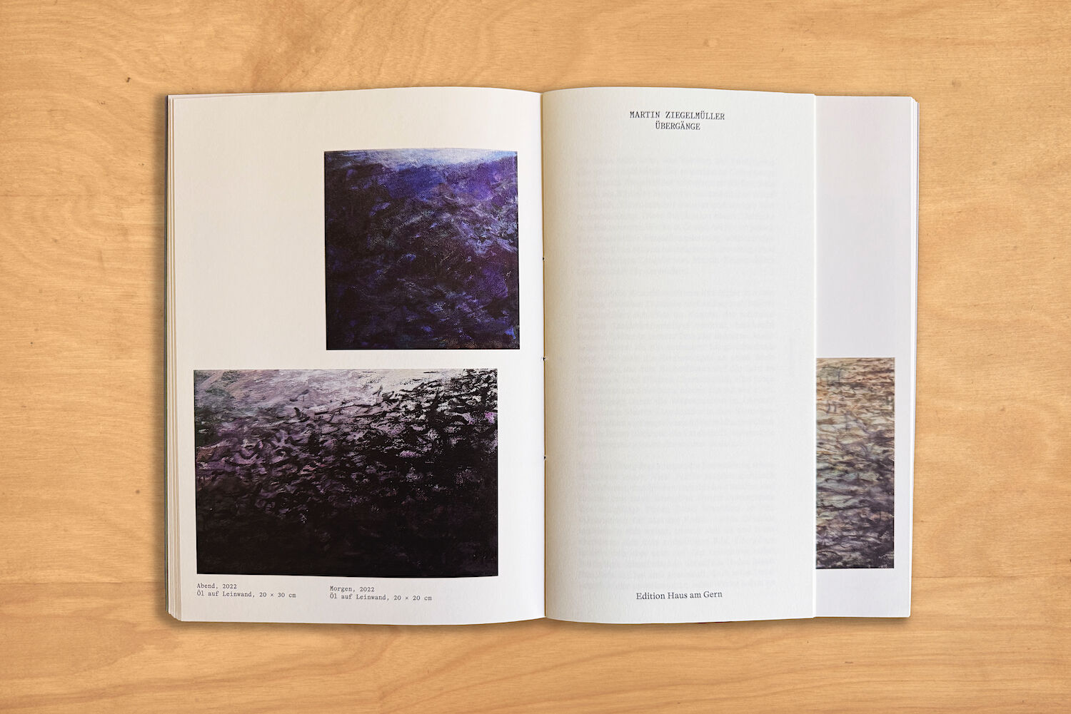 Der Maler Martin Ziegelmüller wird 90 Jahre alt. Aus Anlass dieses Jubiläums erscheint in der Edition Haus am Gern eine kleine, aber umso feinere Publikation, die im Frühjahr 2025 an einer Jubiläumsausstellung in der Galerie Vinelz vorgestellt wird. Es freut u...Der Maler Martin Ziegelmüller wird 90 Jahre alt. Aus Anlass dieses Jubiläums erscheint in der Edition Haus am Gern eine kleine, aber umso feinere Publikation, die im Frühjahr 2025 an einer Jubiläumsausstellung in der Galerie Vinelz vorgestellt wird. Es freut uns besonders, mit der Publikation «Übergänge» an das 2019 bei der Edition Haus am Gern erschienene Buch «Der alte Maler, Notizen 2008 - 2018» anzuknüpfen und die Zusammenarbeit mit Martin Ziegelmüller fortzusetzen. Das Thema «Übergänge» nimmt Bezug auf das Lebensalter von Martin Ziegelmüller und auf den Atelierbrand vom vergangenen Jahr: wie in seiner Malerei die Übergänge von Wasser zum Himmel, vom Fluss zum Hügel, vom Vorder- zum Hintergrund und von einer Farbe zur anderen die entscheidende Rolle spielen, muss sich Martin Ziegelmüller auch im hohen Alter immer wieder neue Übergängen meistern.