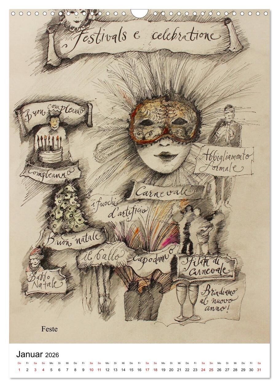 Italienisch Lernen in Bildern (Wandkalender 2026 DIN A3 hoch), CALVENDO Monatskalender