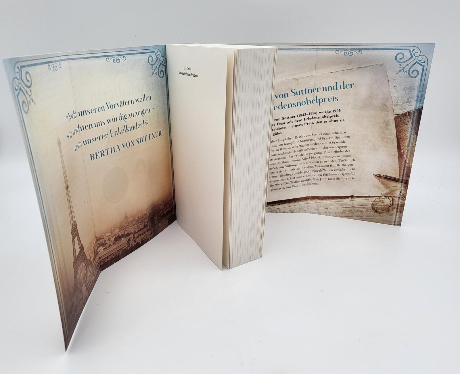 Ihr Leben lang führte Bertha von Suttner den scheinbar aussichtslosen Kampf für Abrüstung und Frieden. In Briefen ermutigte sie ihren Freund Alfred Nobel unermüdlich, eine Stiftung für den Frieden zu gründen, was er in seinem Testament tatsächlich festlegte.