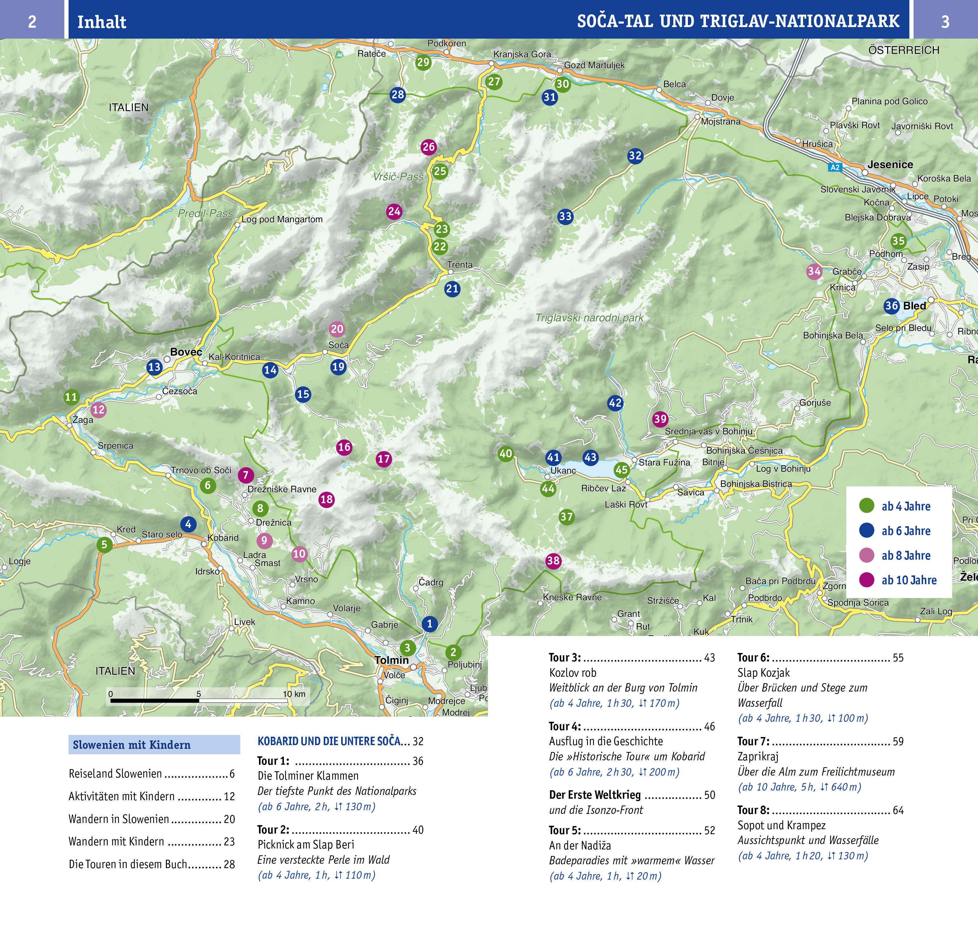 Das türkisblaue Wasser der Soca, glasklare Bergseen, Wasser-fälle, Almen mit Kühen und Schafen und raue Karstland-schaften in den Bergen der Triglav Nationalpark hat viele Facetten. Schwankende Flussbrücken, kleine Kletterpassagen und schmale Bergsteige machen...