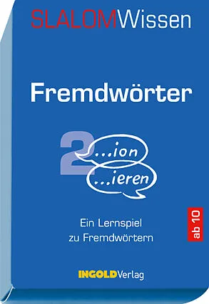 Die Bedeutung von Fremdwörtern kennen: Nomen auf -ion, -anz, -age, -ium, -ie, -enz und -tät. Zum Beispiel: - Illusion - Ambulanz - Blamage - Solarium - Kategorie - Qualität Das Lernspiel gehört zur Serie SLALOMWissen, einem Kartenspiel mit Lerneffekt. Ein Spie...