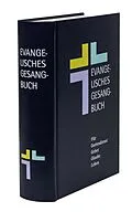 Gemeindeausgabe des Evangelischen Gesangbuch Württemberg mit gelber Kennzeichnung "kirchliches Eigentum" auf der Buch-Rückseite. Lederfaser, Weißschnitt, mit drei farbigen Lesebändchen Lederfaser, Weißschnitt