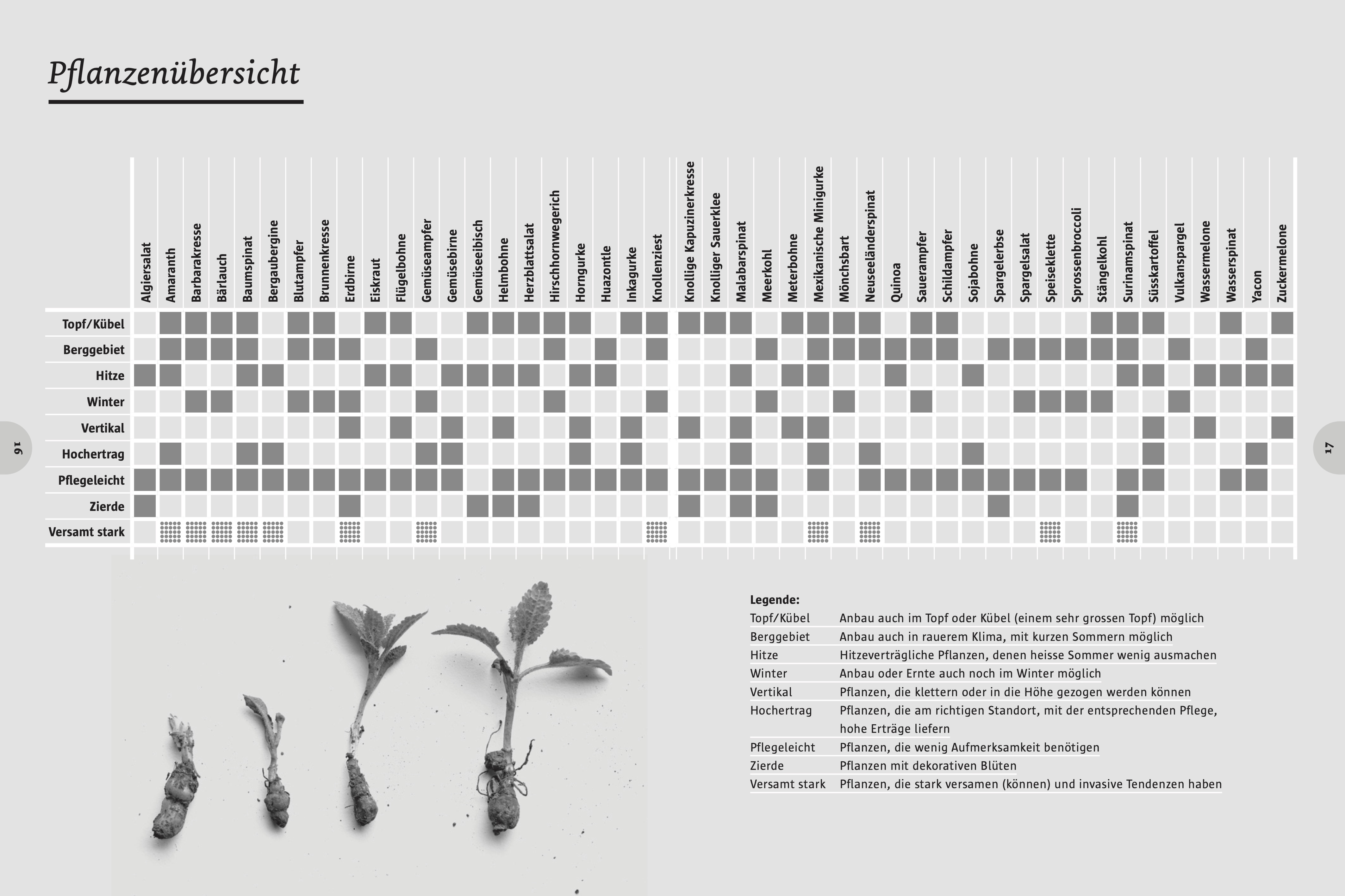 I VORNEWEG 5 Willkommen, Fremde! 10 Klimawandel sei Dank 12 Der Spriessburger-Phanokalender 14 Welche Arten wofur? 16 Pflanzenubersicht 18 Was Sie in diesem Buch finden und was nicht 21 Namen sind Schall und Rauch 22 Familienbande II GEMUSE & SALATE 30 Neu, alt oder einfach nur fremd? 32 Algiersalat 35 Amaranth & Baumspinat 41 Barbarakresse 44 Barlauch 47 Bergaubergine 52 Blutampfer & Sauerampfer 57 Brunnenkresse 61 Erdbirne 66 Flugelbohne 72 Gemuseampfer & Schildampfer 78 Gemusebirne 84 Gemuseeibisch 90 Herzblattsalat & Eiskraut 94 Hirschhornwegerich 98 Horngurke 104 Inkagurke & Mexikanische Minigurke 110 Knollenziest 114 Knollige Kapuzinerkresse 122 Knolliger Sauerklee 127 Malabarspinat 132 Meerkohl 136 Meterbohne & Helmbohne 142 Monchsbart 147 Neuseelanderspinat 150 Quinoa & Huazontle 158 Sojabohne 163 Spargelerbse 168 Spargelsalat 172 Speiseklette 179 Sprossenbroccoli & Stangelkohl 184 Surinamspinat 187 Susskartoffel 196 Vulkanspargel 200 Wassermelone & Zuckermelone 208 Wasserspinat 214 Yacon III VERMEHRUNG & NACHBAU 222 Vom Teller ins Beet 224 Nachwuchs vom Beet 230 Saatgutgewinnung 234 Saatgutlagerung 239 Spezialbehandlungen M Y T H E N 71 Mythos Stickstofffixierung 121 Mythos andine Pflanzen 155 Mythos Superfood 204 Mythos gesunde Kulturen IV ANHANG 248 Schweizerdeutsch -> Deutsch 249 Bildnachweise 250 Quellen, Links, weiterfuhrende Literatur 252 Pflanzenverzeichnis 256 Stichwortverzeichnis 258 Dank 259 Autorin und Verlag 260 Bucher im Spriessburger Verlag