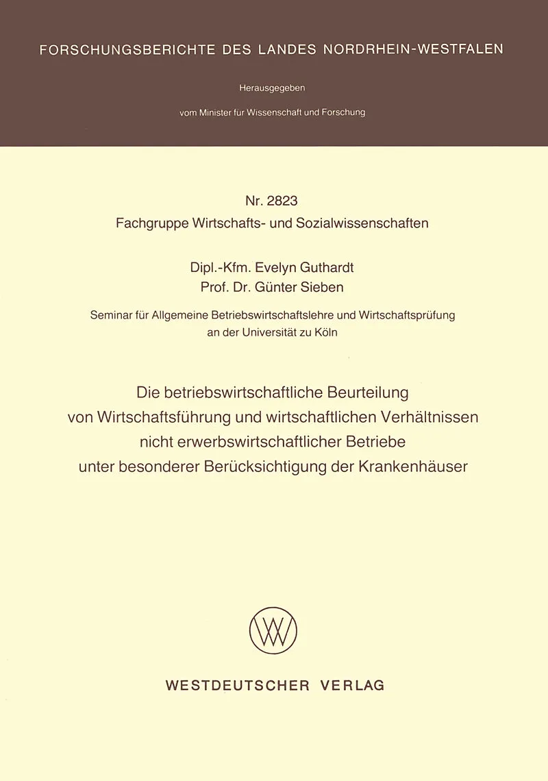 ===== Das vorliegende Forschungsprojekt mit dem Thema "Die betriebs wirtschaftliche Beurteilung von Wirtschaftsfuhrung und wirt schaftlichen Verhal tnisse nicht erwerbswirtscha·ftlicher Betriebe unter besonderer Berucksichtigung der Krankenhauser&...