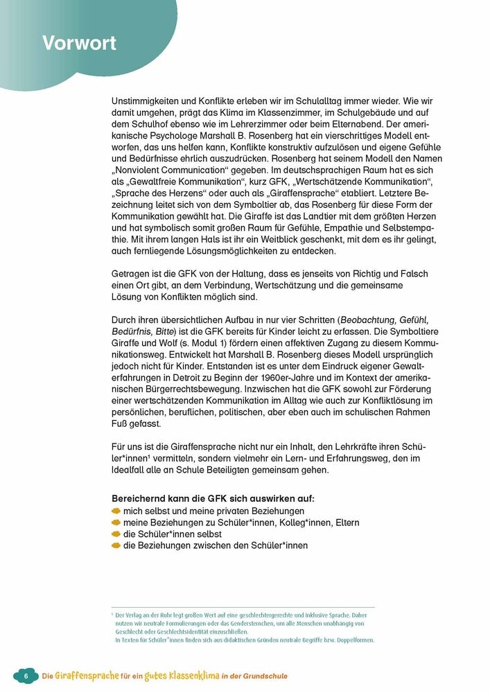 Unterrichtsmaterial für Lehrer und Lehrerinnen an Grundschulen sowie Mitarbeiter und Mitarbeiterinnen in Hort und Ganztag, Fach: Soziales Lernen, Klasse 14 +++ Mit der Giraffensprache zur wertschätzenden Kommunikation und zu einem guten Klassenklima in der Gr...
