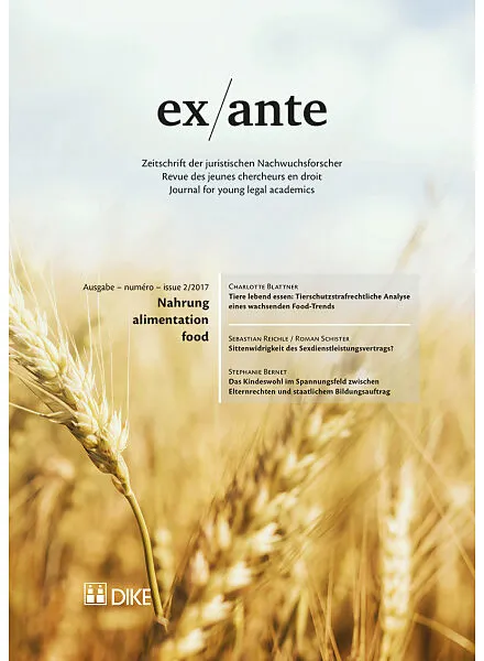 Nahrung / alimentation / food Anstelle eines Vorworts: Nahrung als Recht? / En lieu et place d'avant-propos: L'alimentation comme droit? Charlotte Blattner: Tiere lebend essen: Tierschutzstrafrechtliche Analyse eines wachsenden Food-Trends Sebastian Reichle / ...