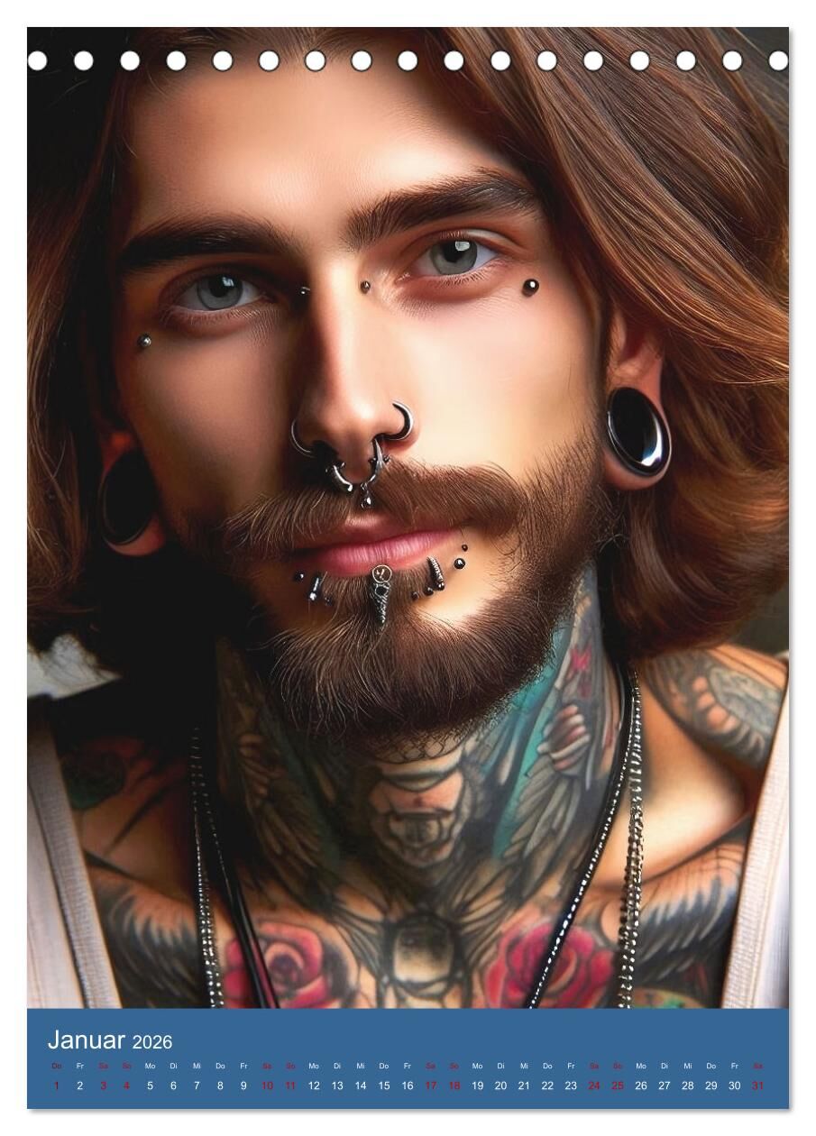 Lass dich von der einzigartigen Kombination aus Körperkunst und modernster KI-Technologie begeistern! Dieser Kalender präsentiert tätowierte und gepiercte Männer in kraftvollen, ausdrucksstarken Bildern, die ihre Individualität und Stärke auf faszinierende Wei...