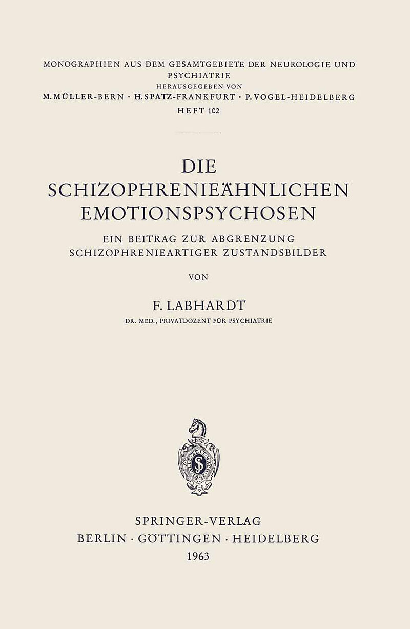 Der Begriff "Emotionspsychose" wurde von mir in einer Arbeit yom Jahre 1946 verwendet, urn gewisse Schizophrenie-ahnliche Reaktionen auf starke affektive Spannungen und Erschiitterungen herauszulOsen aus dem groBen Kreis der schizophrenen Psychosen. ...