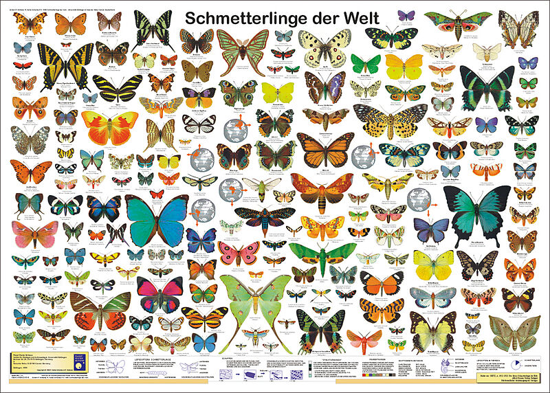 Schmetterlinge der Welt war eines der ersten Poster, die wir herausgebracht hatten (1999). Auf dem Poster sind 180 Schmetterlinge aus aller Welt abgebildet. Vor allem weil es so schön dekorativ ist, ist dieses nach wie vor eines der erfolgreichsten Poster von ...