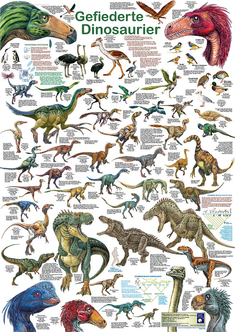 Die Zeichnungen der ausgestorbenen gefiederten Dinosaurier stammen von dem argentinischen Paläontologen Gabriel Lio, der selbst auch an wissenschaftlichen Publikationen mitgearbeitet hat. Gabriel Lio gilt als einer der besten Dinosaurier-Zeichner der Welt. Fed...