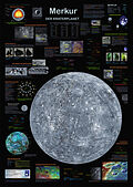Als einziger Planet hat Merkur wie viele Monde eine uralte, starre und über und über mit Kratern überzogene Oberfläche. Erstaunlicherweise gibt es am Nordpol offenbar Wassereis, im Schatten einiger Kraterränder. Die Temperaturunterschiede auf dem Merkur (-173 ...
