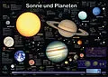 Das Poster "Sonne und Planeten" zeigt die Sonne, alle acht Planeten und bedeutende Asteroiden, mit ihren Monden und den wichtigsten Daten. Einige Grafiken geben einen Einblick in die Welt buchstäblich astronomischer Entfernungen.