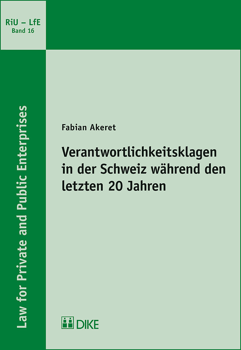 In den vergangenen 20 Jahren kam es immer wieder zu spektakulären Verantwortlichkeitsklagen in der Schweiz. Erwähnenswert sind zum Beispiel die Fälle «Swissair», «Erb-Gruppe», «Omni Holding» mit Werner K. Rey, «Biber Holding» und «Spar- und Leihkasse Thun», um...