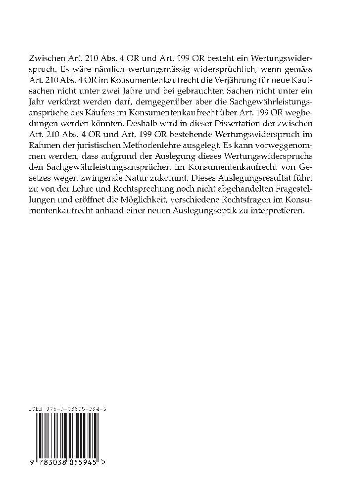 Zwischen Art. 210 Abs. 4 OR und Art. 199 OR besteht ein Wertungswiderspruch. Es wäre nämlich wertungsmässig widersprüchlich, wenn gemäss Art. 210 Abs. 4 OR im Konsumentenkaufrecht die Verjährung für neue Kaufsachen nicht unter zwei Jahre und bei gebrauchten Sa...