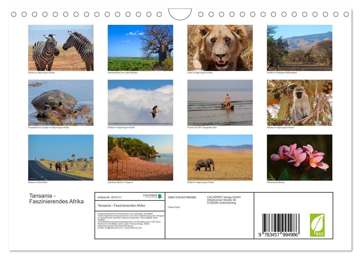 Tansania - Faszinierendes Afrika (Wandkalender 2026 DIN A4 quer), CALVENDO Monatskalender