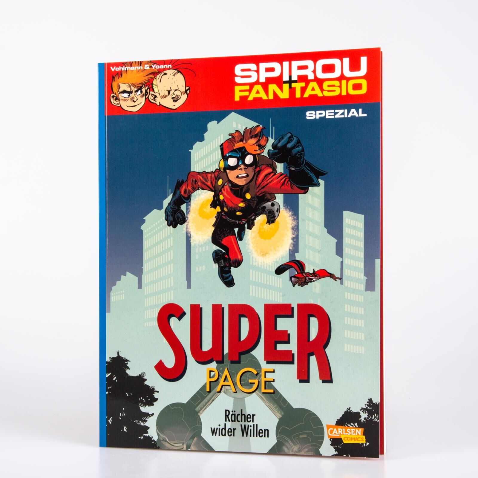 Man hat es nicht leicht als alternder Comic-Held! Die alten Leser wollen mehr vom gleichen, neue sind schwer zu finden. Was soll man sich da noch einfallen lassen? Spirou hat eine blendende Idee: er wird zum Superpagen! So kann er weiter für die Gerechtigkeit...